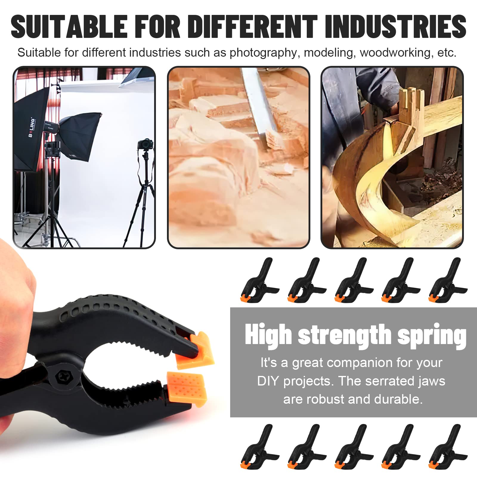Cette pince de travail du bois de 10 cm est légère afin que vous puissiez facilement la déplacer d'un endroit à un autre endroit ou partout où vous le souhaitez. Offre une prise en main confortable Le trou rond à l'extrémité de la poignée le rend facile à accrocher. Le serrage rapide et ferme Il est également portable, vous pouvez le ranger pour la prochaine utilisation sans tracas. Il est également portable, vous pouvez le ranger pour une prochaine utilisation sans tracas. Matériel:Plastique Couleur: noir orange Style:Lot de 20, 4,5 pouces Description: *Articles : lot de 20 pinces à ressort en plastique durable de 11,4 cm, construction en nylon robuste, solide et stable, ne rouille pas, durée de vie plus longue. * Multifonctionnel : idéal pour le bricolage, les fonds en tissu, la photographie, le studio photo, le modèle, le bois, le travail du bois, les... Les pinces à ressort peuvent être utilisées pour réaliser des modèles, le travail du bois, la photographie, les arrière-plans et les projets de bricolage. Il dispose d'un pivot en acier haute résistance et d'un ressort interne pour améliorer sa durabilité., : En plastique Ces pinces sont un incontournable pour tout type d'intérieur. PINCES ROBUSTES ET durables pour enlever et installer les pinces de Il est également adapté pour fixer des photos, des fils, des lumières de studio, des fonds, des toiles et d'autres accessoires de photographie. Lot De 10 Pinces à Ressort En Plastique De 7,6 Cm Réglables Pour Studio Photo, Arrière-plans, Travaux Du Bois, Projets De Bricolage La poignée ergonomique antidérapante des pinces crocodiles offre une prise en main confortable, un serrage rapide et ferme des pièces plates et de forme bizarre et permet une utilisation d'une seule main. Les pinces à ressort peuvent être utilisées pour fabriquer des modèles, du travail du bois, de la photographie, des fonds et des projets de bricolage. La poignée ergonomique antidérapante des pinces crocodile offre une prise en main confortable et un serrage rapide et ferme à plat. Set complet de pinces revolver, pinces revolver robustes, pinces à... Ces pinces à bois sont légères afin que vous puissiez facilement les déplacer d'un endroit à un autre endroit ou n'importe où vous le souhaitez.
