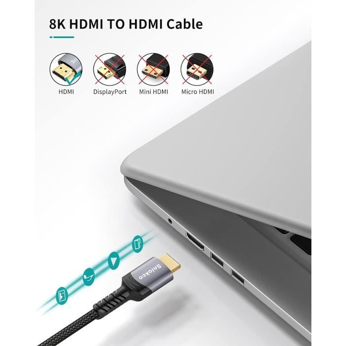 RUIPRO Câble HDMI 2., 1 ultra fin certifié 8K de 0,9 m, ultra haute vitesse 48 Gbit/s, câble HDMI court, prend en charge 8K @ 60 Hz 4K @ 120 Hz, HDR dynamique, eARC, compatible avec PS5/Xbox/HDTV/Blu-ray/moniteur/projecteur Matériaux et fabrication de haute qualité : le câble HDMI ultra haut débit RUIPRO est fabriqué à partir de cuivre sans oxygène, construit avec un noyau en cuivre étamé et plusieurs blindages pour garantir une transmission rapide et sans faille du signal, il élève l'expérience de jeu pour les amateurs et améliore le plaisir visuel des amateurs de télévision en offrant une résolution sans précédent, des couleurs vives et un jeu fluide, créant un environnement de divertissement immersif et avant-gardiste Large compatibilité : le câble HDMI 2., 1 RUIPRO 8K est compatible avec TV LG, Samsung QLED, Fire TV, Roku, Sony 8K UHD TV/OLED TV, Blu-Ray, ordinateur portable, PC, Nvidia RTX 3090/3080, AMD Radeon RX 6900 XT/6800XT, DVD, Tivo, Vizio, PS5, PS4 Pro, PS3, Switch, Blu-Ray Play., er, projecteur, moniteur UGREEN Câble HDMI 2.1 10K 8K 48 Gbit/s de 0,9 m, certifié 8K 10K 8K Câble Hdmi 2.1 0.5M, Certifié Ultra Haute Vitesse Câble Hdmi 4K... Ruipro Hdmi 2.1 Fibre Optique 0,6m ThunderBird 48 2.1 Câble HDMI - 8K/10K Ultra HD, Gaming, Haute Vitesse, 48Gbps, HDR, EARC Câble Hdmi En 1 Heure Si vous rencontrez des problèmes avec votre câble HDMI à fibre 8K, nous allons résoudre les problèmes rapidement pour garantir votre entière satisfaction