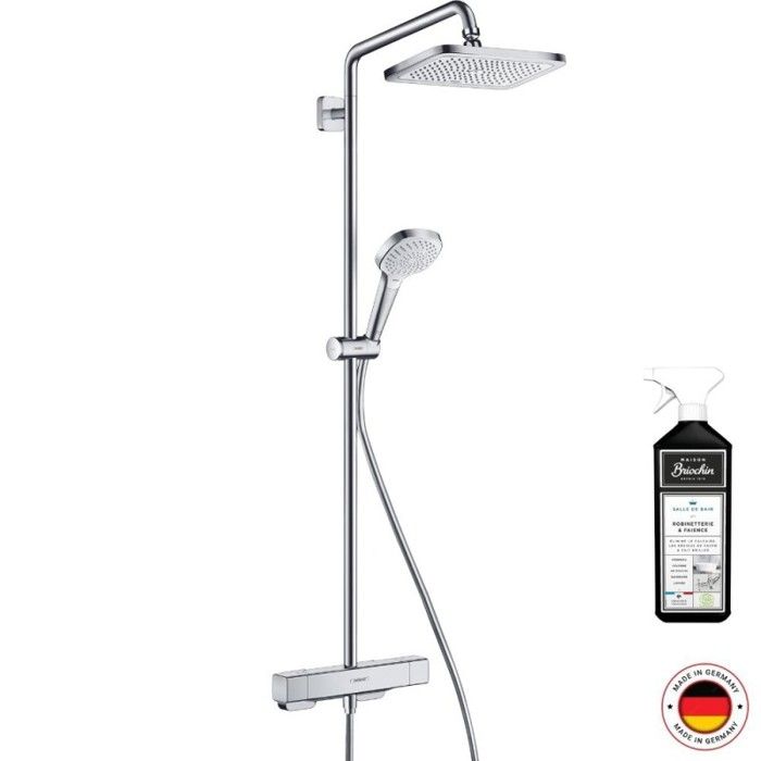 Détail pratique : les résidus de calcaire s'enlèvent facilement des buses flexibles en silicone (QuickClean). Le design harmonieux de la ligne Croma impressionne par ses formes rondes ou son design SoftCube légèrement arrondi Select S Colonne Hansgrohe Croma 160 - Set De Douche Showerpipe Avec Mitigeur à Levier, Chrome 27154000 Pommeau De Douche Hansgrohe Apporte une nouvelle énergie : le jet Rain rafraîchit avec une pluie puissante Avec un diamètre de 160 mm, le pommeau de douche s'adapte bien dans une petite zone de douche. Autres particularités : Polyvalent : la pomme de douche peut être montée au mur ou au plafond (filetage de raccordement G ½). Avec le pommeau de douche Croma 160 de Hansgrohe, le plaisir de la douche original de Hansgrohe pénètre dans la salle de bain. Aspect brillant : la surface chromée brillante convainc par sa brillance durable La surface chromée brillante apporte une touche éclatante à votre salle de bain et séduit par sa qualité durable et sa brillance durable. Set de douche, 1 Jet, DN15 douche de tête Croma 160,dimension du module de douche : 160 mm raccord à rotule Top rapport qualité / prix : La colonne de douche Hansgrohe Showerpipe Hansgrohe Croma Douche de tête 280 1 jet, Bronze brossé (26220140... Le pommeau de douche de Hansgrohe peut être orienté individuellement à sa propre position de douche grâce à un joint à rotule. Le jet de pluie revitalisant distribue l'eau largement sur le corps et aide à devenir bruyante le matin ou à faire le plein d'énergie le soir. Un bras de douche ou un raccord de plafond est également nécessaire. Fonctionnalités confortables et qualité supérieure. diamètre: 160 mm. · douche de tête orientable. · jet Rain. · débit du jet Rain (sous 3 bars de pression): 17 l/min. · disque de jet entièrement chromé