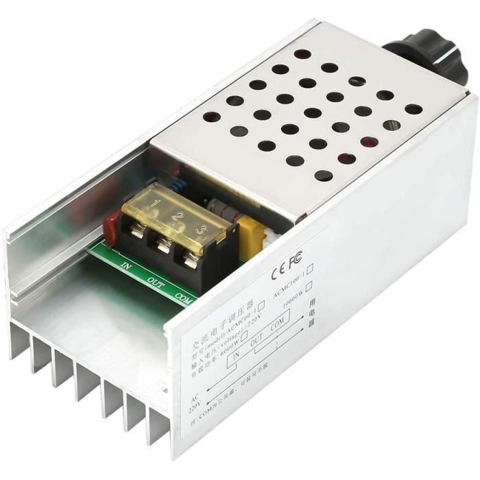 Caractéristiques : 1., ce régulateur de tension est équipé d'un nouveau redresseur au silicium de grande puissance à deux voies et le courant peut atteindre 80A, ce qui est une bonne solution pour la surintensité du fil de la cuisinière électrique causée par une faible résistance pendant le refroidissement., 2., il peut facilement ajuster la tension de sortie sur une échelle de 0 à 100 % (non linéaire) pour alimenter les appareils électriques, et peut être largement utilisé comme régulateur de chaleur sur les poêles électriques, les chauffe-eau, le gradateur de lumière sur les lampes, le régulateur de vitesse sur les petits moteurs, ou le régulateur de température sur les fers à souder électriques, etc. Haute performance]: Ce variateur de vitesse pour moteur a un nouveau redresseur contrôlé à grande puissance à grande puissance et le courant peut être jusqu'à 80A, ce qui est une bonne solution pour surexploiter le fil de poêle électrique causé par une faible résistance pendant le refroidissement 【Haute performance】: Ce variateur de vitesse pour moteur a un nouveau redresseur contrôlé à grande puissance à grande puissance et le courant peut être jusqu'à 80A, ce qui est une bonne solution pour surexploiter le fil de poêle électrique causé par une faible résistance pendant le refroidissement Regulateur De Tension HURRISE Régulateur De Tension SCR Affichage Numérique AC220V 10000W Régulateur De Tension Variateur De Vitesse Pour Moteur 220v 【Large gamme d'applications】: Thermostat contrôleur de vitesse régulation de tension numérique elle peut être utilisée comme alimentation pour les grands dispositifs électriques de moins de 10000 W, suffisamment pour les appareils électroménagers ou pour les petites usines. Description Ce variateur de tension numérique est un outil super puissant pour les bricoleurs avertis ! Puissance max de 10000W (5000W recommandé en usage prolongé). Tension d'entrée AC 220V avec réglage de 0 à 100% de la tension de sortie. Courant maximum de 80A grâce au thyristor bidirectionnel haute performance. Dimensions compactes : contrôleur 95,7x56,7x53,8mm et panneau 74,6x59... Variateur de tension 220V pour moteur, régulateur de vitesse 【Fonction】: Il peut facilement ajuster la tension de sortie sur une échelle de 0 à 100% (non linéaire) pour alimenter le dispositif électrique, pourrait être largement utilisé comme contrôleur de chaleur sur les poêles électriques, les chauffe-eau, le gradateur léger sur les lampes, le contrôleur de vitesse sur un petit contrôleur sur petit moteurs ou contrôleur de température sur le fer à souder électrique, etc. Spécifications : Tension : AC 220V Puissance maximale : 10000W (limite instantanée de puissance pour une charge d'impédance ; pour une utilisation à long terme, 5000w ou moins sont recommandés) Réglage de la tension : 0-100% (non linéaire) Taille du contrôleur : 95,7*56,7*53,8mm/3,76*2,23*2,11., Taille du panneau : 74., 6*59., 8*2., 3mm/2., 93*2., 35*0., 09 Longueur du câble : 287mm/11., 3 Remarque : 1, Entrée AC, sortie AC, la tension de sortie est inférieure (ou égale) à la tension d'entrée ; la tension ne peut être ajustée que lorsqu'elle est connectée à la charge ; principalement utilisé pour une charge résistive., 2., Il ne peut pas remplacer le chargeur de batterie des vélos électriques, ni alimenter les appareils électriques qui utilisent une alimentation à interrupteur (tels que la télévision 110V, le haut-parleur, le réfrigérateur, le climatiseur, le cuiseur de riz avec un ordinateur), et ne peut pas alimenter la cuisinière à induction, la lampe à économie d'énergie.
