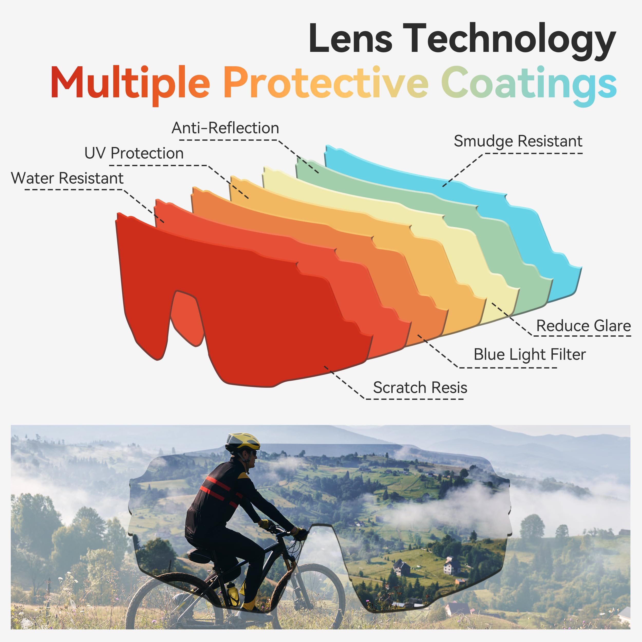 [Protection UV 100 % - Profitez de votre vie sportive de plein air] Pour mieux filtrer la lumière du soleil nocive, nous utilisons des verres PC multicouches avec des revêtements anti-reflet et des revêtements réfléchissants sur la surface, qui répondent à la norme de protection solaire UV 400., La surface de la lentille a un revêtement de protection qui est résistant aux chocs, aux rayures et à l'eau, adapté pour les scènes sportives complexes, vous permettant de vous immerger et de profiter de votre vie en plein air. [Donnez à votre enfant une enfance au soleil – Convient aux enfants de 8 à 12 ans] Nos lunettes sont conçues pour se courber vers l'intérieur, évitant le problème de tomber en raison de la petite taille de la tête des enfants. Lunettes de soleil cool – Répond à vos besoins quotidiens : nos verres de lunettes de sport disposent d'un revêtement multicolore, qui peut filtrer la lumière du soleil plus largement tout en ayant une apparence colorée et élégante. Verres UV400 Monture TR90 Lunettes Cyclisme X-TIGER Photochromiques - Anti- UV400, Monture TR90, 18g - VTT, Vélo, Sport Verres Photochromiques Outdoor Achetez KAPVOE Lunette de Cyclisme Photochromique Homme Femme Anti-UV400 Lunette de Soleil Sport Lunette Vélo Route TR90 Cadre Lunette VTT Transparente... Lunettes Running Homme KAPVOE Lunettes Cyclisme Photochromiques - Anti-UV400, Monture Sans Cadre, Pour VTT, Running Et Sports Outdoor Lunette Cycliste Homme Lunettes de soleil confortables pour femmes, hommes et enfants : la monture des lunettes de soleil de sport tendance utilise des matériaux élastiques avec extensibilité, et l'apparence adopte un design incurvé et aérodynamique, qui peut mieux s'adapter à la forme de votre tête, ce qui les rend peuvent être utilisées par les adultes et les jeunes. Si vous avez encore des préoccupations, nous offrons un remplacement gratuit de 30 jours et un remplacement gratuit d'un an pour les problèmes de qualité. En même temps, nos lunettes sont extensibles, de sorte que vous n'avez pas à vous soucier qu'elles ne conviennent pas aux tailles de tête plus grandes. Elles peuvent être utilisées comme lunettes de soleil de course, lunettes de soleil de pêche, lunettes de soleil de conduite, lunettes de soleil de vélo, lunettes de soleil de voyage et lunettes de soleil de randonnée. Avec un design sportif professionnel, elles sont adaptées comme lunettes de soleil de baseball, lunettes de soleil de vélo.