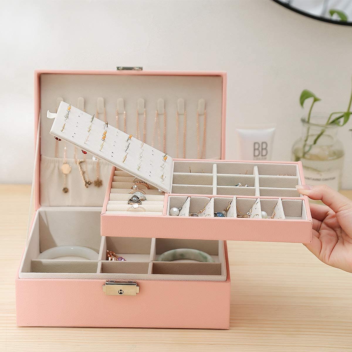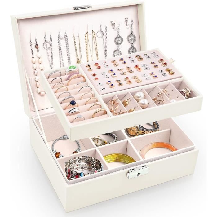 La meilleure boîte à bijoux pour vous Boîte de Rangement de Bijoux, en Cuir Rosa Pu Portable 3 【Boîte à bijoux peu encombrante】Avec notre boîte à bagues, tous vos bijoux seront soigneusement organisés et faciles à atteindre, puisqu'il y a une commode lumineuse, économise beaucoup d'espace pour rendre votre chambre plus gracieuse. DEZZIE Femmes Verrouillable PU Boite à Bijoux En Cote DIvoire Remplissez avec un cadeau parfait : cette boîte à bijoux Dezzie sera une serrure améliorée, élégante rose rendra votre commode plus belle, c'est ce qui vous rend heureux lorsque vous recevez cette boîte à bijoux. Grande boîte à édicaents - Boîtes verrouillables pour réfrigérateur pour le stockage des... Cadeau idéal pour une mère, une épouse, une fille ou une amie, pour la Saint-Valentin, la fête des mères, Noël, un anniversaire et le Nouvel An Facile à transporter, adapté pour les voyages. 【 3 couches et grande capacité 】 7 rainures pour anneaux, 9 étuis pour bagues, 6 crochets pour collier avec 36 cartes, 6 espaces réglables, 2 grands compartiments.