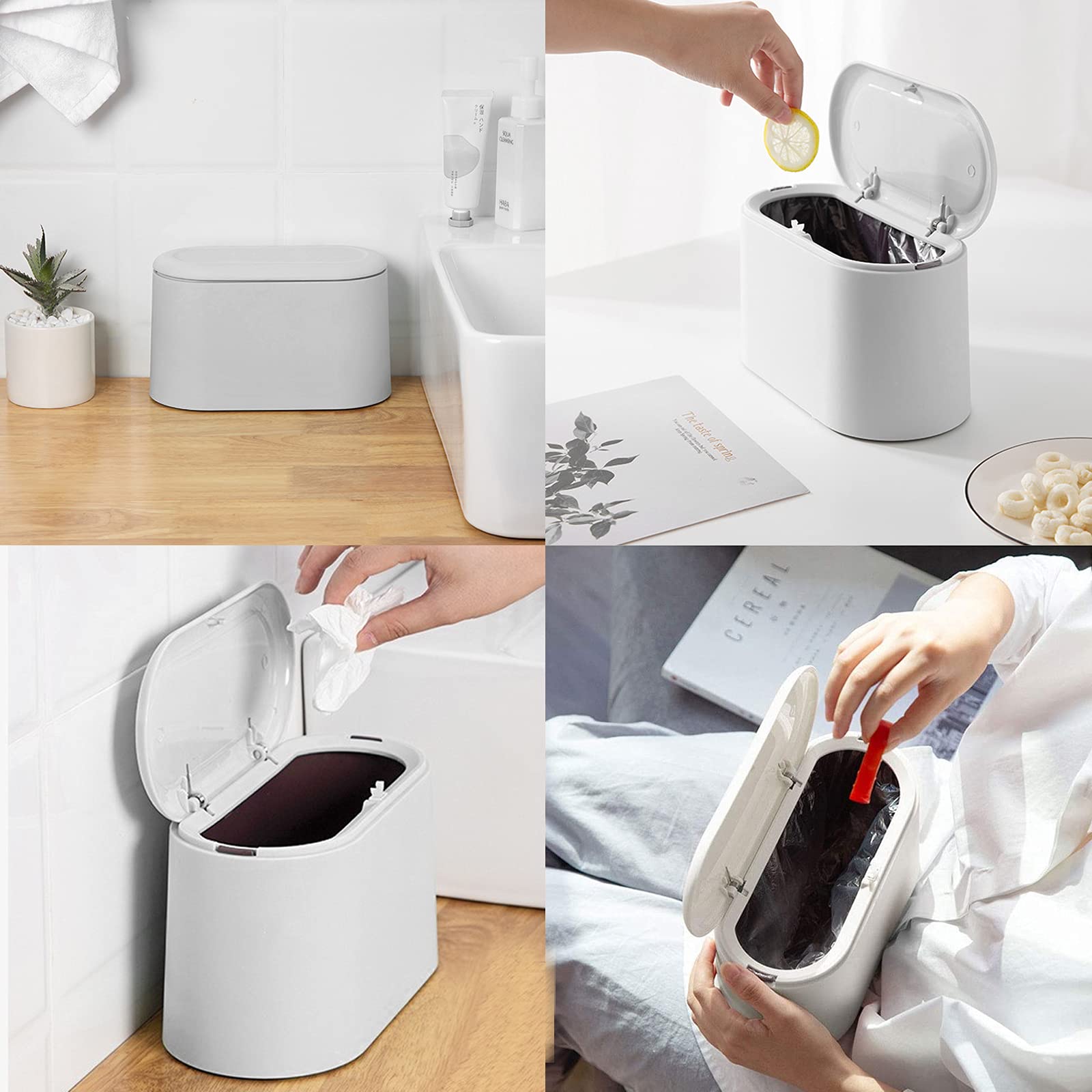 La mini-poubelle blanche a un aspect élégant, un design original et unique, et est pratique et rapide à utiliser. Il peut non seulement être placé dans la salle de bain, la cuisine, la chambre et d'autres endroits, mais peut également être une décoration de bureau élégante pour réaliser le stockage des ordures à tout moment, partout. Poubelle De Table Avec Couvercle À Bouton-Poussoir Mini Poubelle... 【Conception interne à double couche】la poubelle interne à double couche de la mini poubelle a un noyau amovible à boucle intégrée et un sac poubelle fixe. Étendue de la livraison : 1 mini poubelle C'est un outil de rangement idéal pour les poubelles de bureau. Vous pouvez emporter une petite poubelle avec vous lorsque vous travaillez ou regardez une pièce de théâtre, ce qui est pratique pour jeter les ordures à tout moment. Le sac poubelle caché est plus beau et bien rangé. Spécifications : Quantité : 1 Couleur : blanc Matériau : plastique Taille: 21 x 13 x 10CM Caractéristiques : 1., La poubelle de bureau en plastique est écologique, saine et sans goût, résistante à la pression et aux chutes, solide et durable., 2., Conception intérieure détachable, utilisant des poubelles à double couche et des boucles intégrées pour fixer et cacher en toute sécurité les sacs poubelles, rendant votre bureau plus propre et bien rangé., 3., Une petite poubelle de bureau avec un couvercle rabattable est très pratique pour collecter les petits déchets tels que les essuie-tout, les chutes de papier et les résidus alimentaires. 【Matériaux de haute qualité】la poubelle de bureau est faite de matériaux plastiques de haute qualité respectueux de l'environnement, avec des coins arrondis et lisses et une prise en main confortable. Rousey Mini Poubelle, Poubelle de Table, Poubelle de Table de Bureau Mini Poubelle De Bureau Poubelle De Table Mini Poubelle Cuisine Bacs Bacs En Plastique Avec Petite Poubelle De Bureau Le couvercle est scellé et ne laisse pas fuir les odeurs.