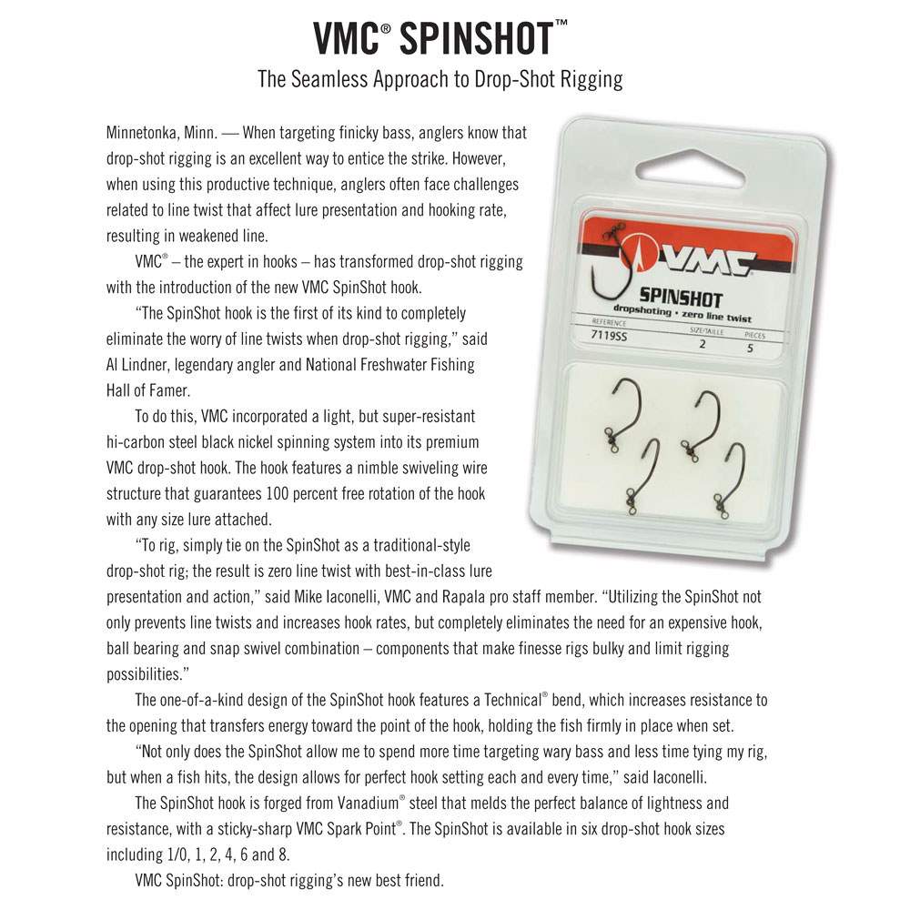5pc/pack VMC 7119SS Spinshot Drop Shot Hook 8 black nickel - Gr.8 - 5Stück Un système rotatif léger et hyper résistant qui révolutionne la pêche Drop Shot. Composé d'un hameçon 7119 Drop Shot à pointe SPARK POINT et d'un émerilon intégré à l'anneau de l'hameçon Neko Hook VMC, Hameçons SPINSHOT – Boutique Nature Chasse Et Pêche Size Chart VMC Hameçons 7130SH SpinShot Lok - Hameçons pour leurres - Magasin de peche