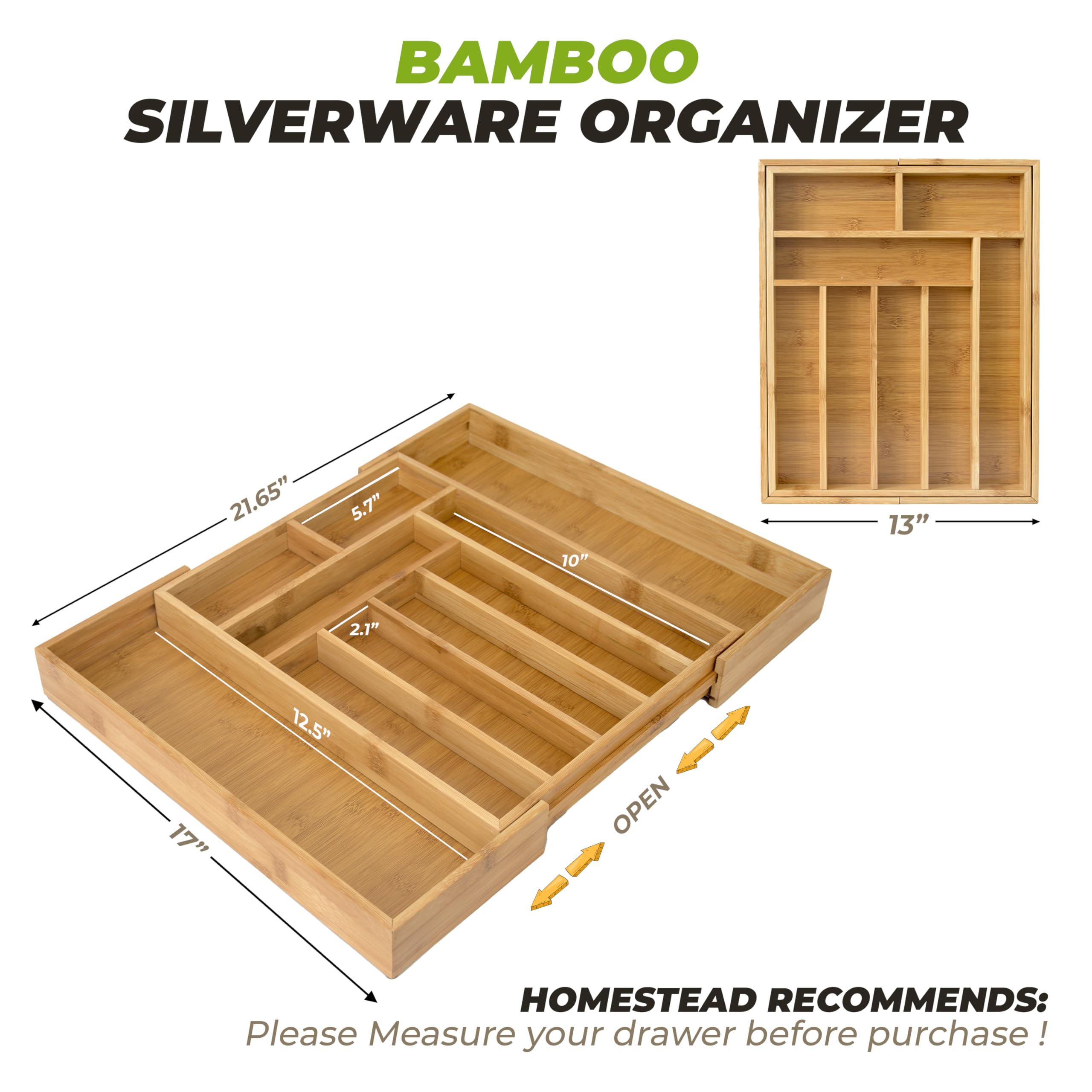 Organisation efficace : cet organisateur de tiroir en bambou offre une excellente solution à l'encombrement de votre maison. Avec 7 à 9 compartiments pour ranger couteaux, fourchettes, cuillères et autres ustensiles. En bambou naturel durable, il inclut une brosse de nettoyage et 4... Matériau 100 % bambou naturel : cet organisateur d'ustensiles en bambou est fabriqué à partir de bambou de haute qualité, respectueux de l'environnement et qui est robuste pour résister à l'usure normale. Meuble Pour Tiroir De Cuisine Accessoire De Cuisine Helloshop26 Organiseur De Tiroir Pour La Cuisine Réglable 5 à 7 Compartiments Bambou Meuble Rangement Tiroirs Cuisine Entretien facile : l'organiseur de tiroir extensible Homestead est simple à entretenir. Winter Shore Rangeent Couvert en Babou [Lot de 2] - Range Couvert... Range-Couverts, Extensible, 5 À 7 Compartiments, Organiseur Pour Le Il s'ajuste de 33 à 54,9 cm de large et s'adapte à la plupart des tiroirs pour aider à maximiser l'espace Multifonction : l'organisateur de tiroir en bambou est parfait pour les couverts de cuisine, les couverts, le bureau, l'organisation des tiroirs de déchets, les fournitures d'artisanat, les cosmétiques et plus encore