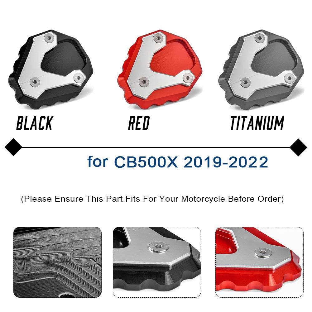 3 : Avec la meilleure finition anodisée. 4 : Instructions d'installation non incluses., 5 : Facile à installer. 【Quantité】 : 1 plaque de support d'extension de béquille latérale pour CB500X 19 20 21 22., 【Fonction】 : 1 : avec ce pied de support plus grand, votre vélo a toujours une position sûre, même sur un sol mou, des accotements boueux, du sable, de l'asphalte mou et des surfaces inégales. Extension de béquille SW-Motech pour Honda CB650 Couleur :fibre de carbone Caractéristiques : 1 : Avec ce pied de support plus grand, votre vélo a toujours une assise sûre, même sur un sol meuble, des accotements boueux, du sable, de l'asphalte mou et surfaces inégales. Il ne s'agit pas d'une pièce d'origine du fabricant. XX eCoerce Extension de béquille latérale de oto - Plaque... 【Matériau】 : fabriqué en alliage d'aluminium de qualité supérieure, durable et bonne résistance à l'usure, pour une durée de vie plus longue. Veuillez confirmer si l'article peut être adapté à votre moteur ou non avant de passer la commande. 【Compatibilité】 : coussinet d'agrandissement de béquille latérale compatible avec CB500X 2019-2022., Il s'agit d'une pièce de rechange. ✔ 3 : avec la meilleure finition anodisée. Caractéristiques : 1 : Avec ce pied de support plus grand, votre vélo a toujours une assise sûre, même sur un sol meuble, des accotements boueux, du sable, de l'asphalte mou et surfaces inégales Extension Béquille Laterale XX ECoerce Extension De Béquille Latérale De Oto - Plaque Extension Béquille Moto Montage :Plaque d'extension de béquille latérale compatible avec CB500X 2019-2022 Emballage inclus : 1 pièce* Coussinet de béquille latérale pour CB 500x