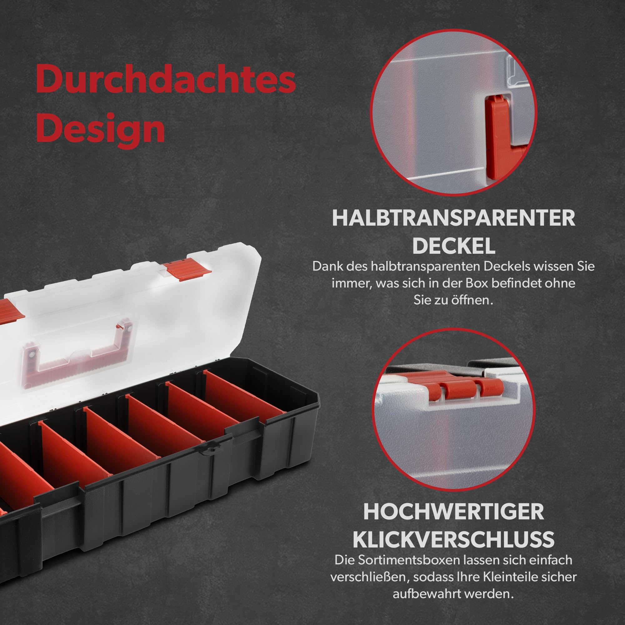6 compartiments amovibles : nos boîtes de rangement offrent six compartiments réglables grâce à des séparateurs amovibles. Plus de déversements accidentels, même si la boîte se renverse accidentellement. Malette Outils Vide Boîte D'assortiment Siwitec Avec 16 Compartiments Et 6 Séparateurs Adaptables, Boîte D'assortiment Pour Petites Pièces, Organisateur D'outils, Valise D'assortiment En Plastique 38 X 29 X 6,5 Cm Caisse A Outil Stanley Accessoires de pêche : Organisez des appâts, des crochets, des cordons et d'autres équipements de pêche. Boîte À Bijoux 24 Compartiments Avec Séparateurs Réglables En Plastique Transparent Pour Ranger... Système de clip modulaire : le design empilable avec notre système de clip modulaire permet d'exploiter au mieux l'espace précieux, que ce soit sur les établis de travail, sur les étagères ou dans l'entrepôt. Siwitec bénéficie de nombreuses années d'expertise et d'expertise dans le domaine du bricolage en tant que marque propre de la marque markenbaumarkt24., de et en tant que partenaire de la société commerciale Schmidts. Cette boîte de tri vous offre un total de 16 compartiments pour vos petites pièces, dont 6 sont réglables individuellement grâce aux séparateurs amovibles. Boite compartimentée RS PRO, 17 Compartiments, Plastique Le fond rainuré vous permet de retirer plus facilement les pièces des compartiments. Nous nous sommes donné pour objectif de devenir votre partenaire pour l'artisanat et l'ingénierie. Fournitures de couture et de bricolage : Gardez les fils à coudre, les aiguilles, les boutons et autres accessoires organisés. Fermeture à clic de qualité Les fermetures robustes garantissent que le contenu est protégé et que rien ne tombe, même si la boîte est renversée accidentellement. Détails du produit bien pensés Dimensions : 38 x 29 x 6,5 cm La plupart de nos produits sont développés et conçus en Allemagne et en Europe. Siwitec Boîte de rangement Empilable pour un transport facile Le système de clip modulaire permet d'empiler et d'agrandir les caisses à l'infini pour faciliter le transport de plusieurs caisses. Briques LEGO : Utilisez les boîtes de tri pour organiser votre collection LEGO par couleurs, tailles ou thèmes. En outre, il permet un transport facile de plusieurs boîtes. Cette adaptation vous permet de concevoir jusqu'à 6 compartiments généreux, idéal pour ranger de nombreuses petites pièces. Test : siwitec Échelle multifonction 4x3 marches avec plaques d'échafaudage Nos boîtes de rangement sont équipées de fermetures à clic fiables qui garantissent que votre contenu reste protégé, même si la boîte est renversée accidentellement. Grâce aux rainures au fond, les petites pièces sont plus faciles à enlever. Taille du compartiment réglable : 11,4 x 8,5 cm MAISON À SIEGEN-WITTGENSTEIN Siwitec est basé dans le pays de Siegerland, l'une des plus grandes régions industrielles d'Allemagne, et produit des produits de haute qualité dans le domaine de l'artisanat et de l'ingénierie. LONGUE EXPÉRIENCE Après de nombreuses années d'expérience dans le domaine du bricolage, chez markenbaumarkt24, nous avons décidé de concentrer notre expertise et de proposer des produits de qualité supérieure pour les bricoleurs et les bricoleurs sous la marque siwitec. DÉTAILS TECHNIQUES - Matériau : plastique | Dimensions : 38 x 29 x 6,5 cm | Nombre de compartiments : 16 | Nombre de séparations : 6 | Poids par boîte : 0,725 kg | Couvercle semi-transparent | Couleur de la boîte : noir | Couleur des séparateurs et fermetures : rouge