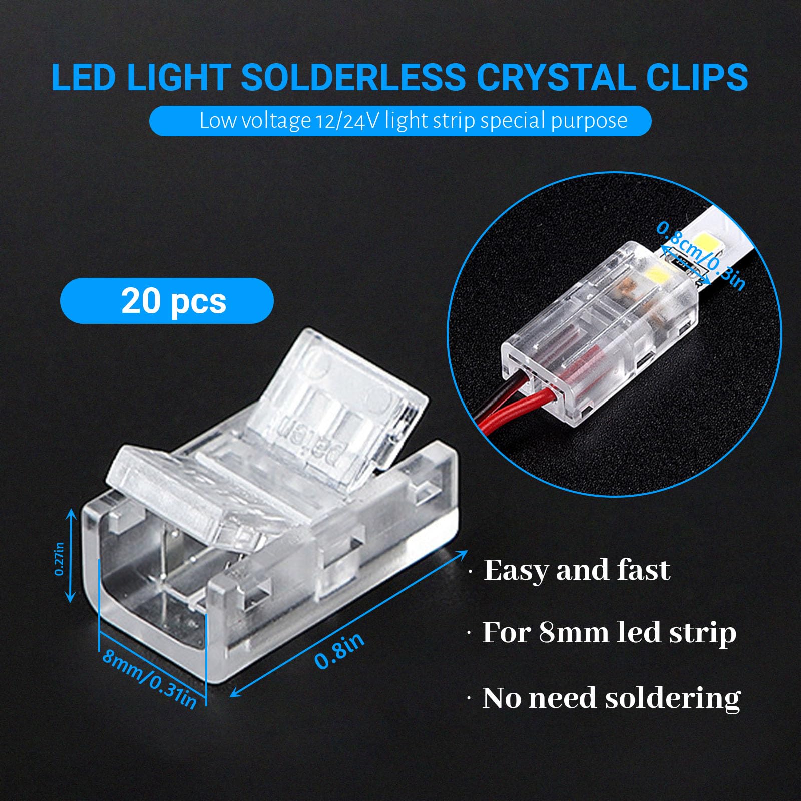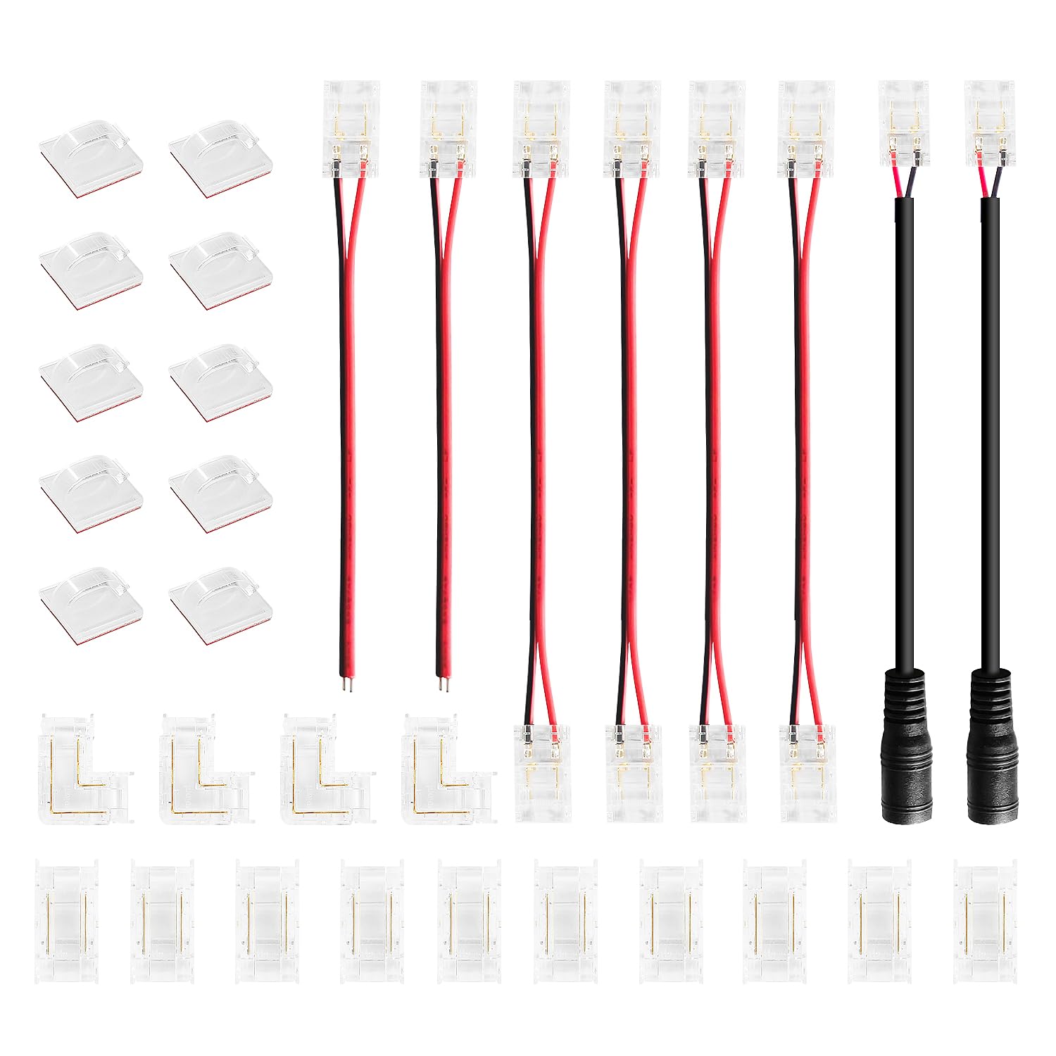 INextStation 32 Pièces 8mm 2-PIN Connecteurs Sans Soudure Pour Bande LED COB, 10 Connecteurs Sans Espace, 6 Connecteurs Avec Câblé, 2 DC-Connecteurs, 4 L-Forme Connecteurs, 10 Clips De Fixatio