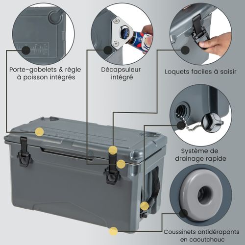 Il est prouvé comme un outil essentiel pour les pêcheurs, les chasseurs, les bateaux, les campeurs et les lanceurs de fête dans le jardin. Glaciere Igloo Calcutta Renegade Rafraîchisseur Rigide Avec Bouchon De Vidange Lumineux – Très Résistant Pour L'extérieur Glaciere Bateau Né au dos d'un magasin d'appâts et de pêche en Floride il y a plus d'un quart de siècle, Calcutta a été créé avec un esprit rebelle et un objectif ambitieux de proposer des produits de plein air à un excellent rapport qualité/prix. Les refroidisseurs haute performance de Calcutta Renegade sont roto-moulés pour une durabilité et une rétention extrême de la glace même dans les conditions les plus difficiles. Principaux points forts · Marque. Calcutta · Couleur. Orange · Matériau. Acier inoxydable · Informations sur l'emballage. Boîte · Capacité. 20 Litres Calcutta : née à l'arrière d'un magasin de matériel de pêche en Floride en 1991, Calcutta a été créé avec un esprit rebelle et un objectif ambitieux de construire du matériel dur pour ceux qui ont une passion pour le plein air. Disponible en plusieurs tailles et couleurs. Glacière Isotherme Portable 15 L avec Bouchon de Vidange et 2 Porte... Gardez votre glace pendant des jours avec le joint de couvercle de qualité industrielle, de style congélateur, et les pieds antidérapants en caoutchouc sur le dessous maintiennent votre refroidisseur en place. Ces glacières sont un outil essentiel pour les pêcheurs, les chasseurs, les bateaux, les tailgers, les campeurs et les lancers. Glacière rigide extrême 10 et 17 L [Prélèvement accessoires Les caractéristiques comprennent : joint de couvercle de style congélateur Freezeal de qualité industrielle, garde la glace pendant des jours, le FLOODLIGHT 100 lumens lumière LED blanche bouchon de vidange incluse, la construction robuste à revêtement roto-moulé maintient la glace froide à l'intérieur et au sec à l'extérieur, les goupilles de charnière en acier inoxydable durables sont presque indestructibles pour résister à des années d'usure, poignées en corde EZ-LIFT avec poignées surdimensionnées pour un transport facile. Ne laissez pas votre échappement s'arrêter lorsque le soleil se couche. Projecteur : le bouchon de vidange surdimensionné dispose d'une lumière LED intégrée de 100 lumens. Durable : les broches de charnière en acier inoxydable sont presque indestructibles pour résister à des années d'usure. Gardez vos articles en sécurité avec un loquet en caoutchouc sécurisé pour une fermeture facile.