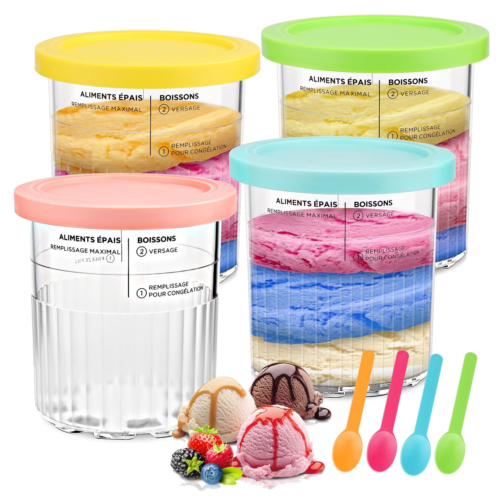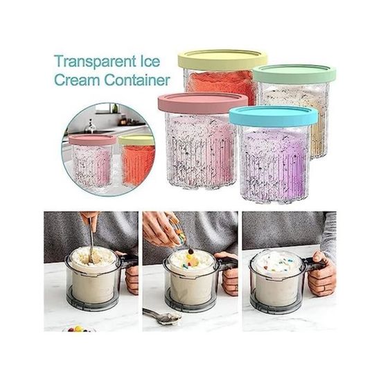 Conteneurs Creami Compatibles Lot De 4 Pots Crème Glacée Ninja Creami - 473ml - Sans BPA - Lave-vaisselle - Couvercles Colorés Récipients Ninja Creami 473ml