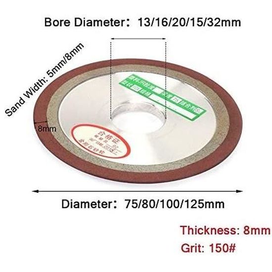 Peut être utilisé dans diverses applications d'outils. Goupille de rectification cylindrique 15 x 10 x 6 mm D126 BQLZR Meule 150# 125 mm de diamètre en acier dur conique uni résine diamant meule : : BricolageÀ propos de cet article Pratique Vous pouvez utiliser dans divers outils et applications de coupe Diamètre extérieur : 125 mm, trou intérieur : 32 mm, épaisseur du diamant : 10 mm - Largeur de l'anneau : 8 mm, taille des parties : 150 cm Champ d'application Vous pouvez utiliser dans divers outils et applications de coupe Largeur de la bague diamant : 8 mm., Poids : 170 g. Liant en résine pour une opération de meulage simple avec de bons taux d'élimination des matériaux, tout en conservant une faible influence thermique sur la pièce., 1., Il est adapté pour meuler les outils de mesure en carbure cémenté et les moules avec d'excellents résultats., 2., Il est utilisé pour une opération de meulage simple, avec un bon taux d'élimination du matériau, tout en maintenant un faible impact thermique sur la pièce. Diamètre intérieur : 32 mm., Épaisseur : 10 mm. Champ d'application : principalement utilisé pour le meulage des outils et des moules de mesure de carbure cémenté. Caractéristiques : Matériau : aluminium, résine, diamant., Couleur : argenté., Granularité : 150., Dimensions : Diamètre extérieur : 125 mm. Contenu de l'emballage : 1 meule diamant en résine avec côté effilé uni, Pratique Meule pour touret 125 ; 100 Meule en carbure de silicium meule abrasive de rechange, pour le meulage de précision LAUWEXE · 24,83€ ; MEULE TOURET BLANCHE 125X20X20... Meule Pour Touret 125 Mm Grain 150 # Cutter En Acier Dur D'un Côté Conique Diamant Meule Meuleuse 125 Mm La meule diamant à cône simple (PDX) est le plus souvent utilisée pour meuler diverses dents de scie avec un angle inférieur à 30., Il peut broyer différents fraises, alésoirs, émetteurs d'engrenages, etc.