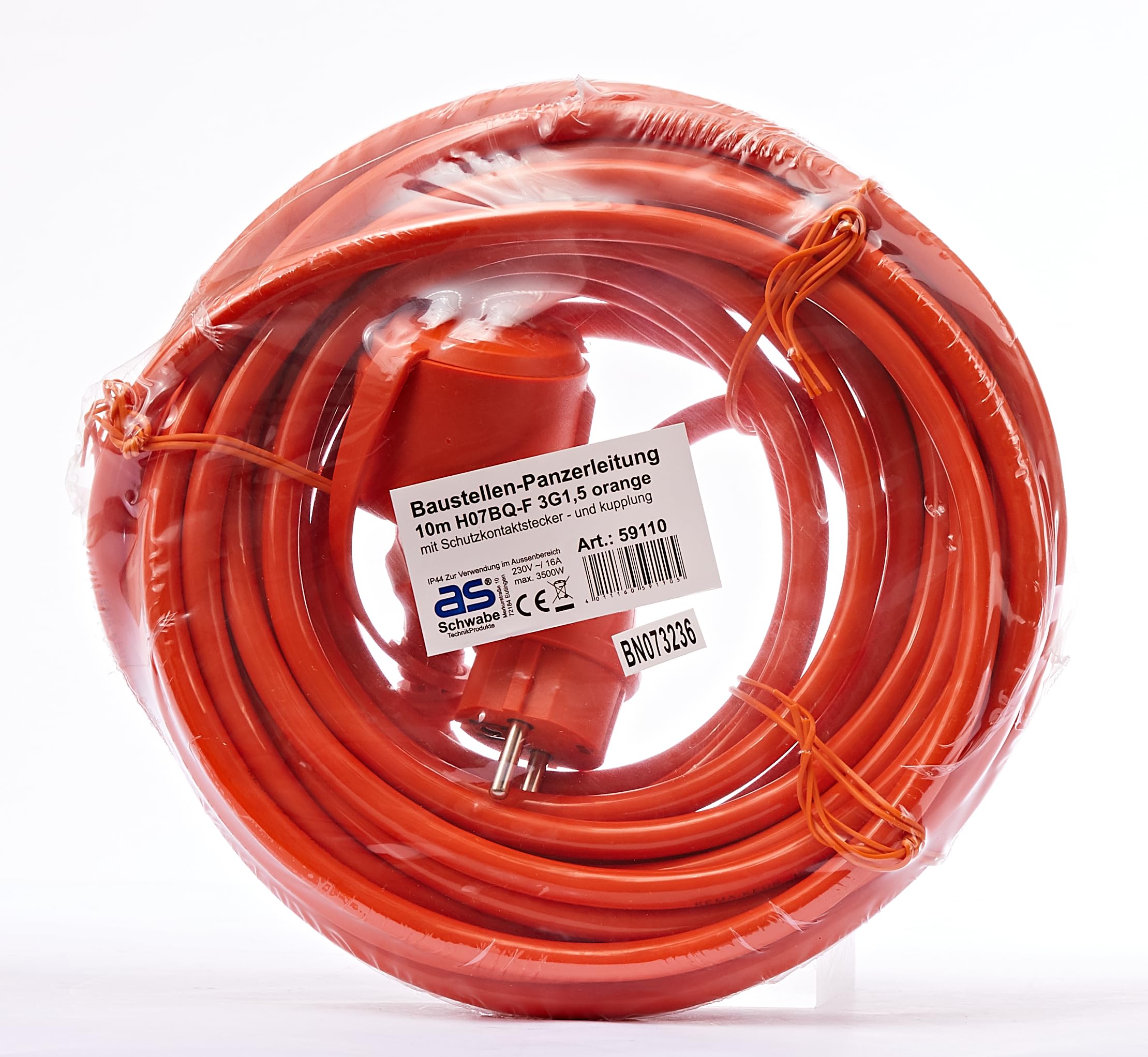 Résistant à l'huile et très résistant à l'abrasion. Parfait pour les chantiers de construction, l'industrie, une utilisation durable en extérieur. Sécurité : Testé selon DIN VDE 0620- 1, DIN VDE 0282-10Utilisation : classe de protection IP 44 - convient pour le commerce et la constructionDonnées techniques : 230 V/16 A Rallonge 5m Rallonge électrique - As-Schwabe - 59105 - Câble Orange 5 M - Extérieur Rallonge Electrique 2.5mm2 as - Schwabe 59105 Rallonge électrique de chantier Câble orange 5 m H07BQF 3G1,5 Extérieur / IP44 (Import Allemagne) as - Schwabe PUR Cordon d'Alientation pour Chantier de 3 Fiche 2PT T... Câble de couleur orange de sécurité. À propos de cet article