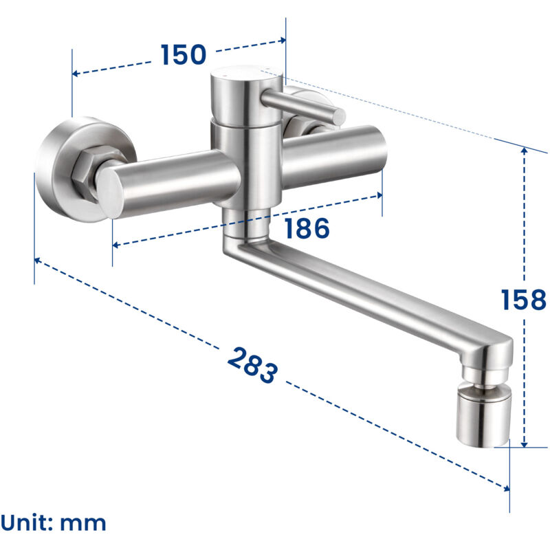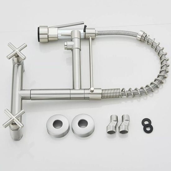 Robinet De Cuisine Mural, Rotatif À 360°, Robinet Mural, Robinet Mural Cuisine, Mitigeur Cuisine, Robinet Cuisine, Mitigeur Cuisine Avec Douchette Description du produit Ce robinet de cuisine de remplacement est fabriqué en acier inoxydable 304 sélectionné, ce qui lui confère d'excellentes performances et une grande durabilité. 90°C/194°F Distance du trou d'installation : 15cm/5., 91in Distance d'installation réglable : 13., 5-16., 5cm/5., 31-6., 5in Mode d'évacuation de l'eau : 3 (robinet, pistolet, robinet + pistolet) Interface : G 1/2 » Pression d'eau du robinet : 0., 05-0., 6Mpa Longueur du tuyau extensible : 1., 5m/4., 92ft Longueur du bec rotatif : 23cm/9., 05in Taille du robinet : 29*19., 5*15cm/11., 42*7., 68*5., 91in Taille de l'emballage : 35*19*13cm/13., 78*7., 48*5., 12in Poids brut : 1., 99kg/4., 39lbs Poids net : 1., 68kg/3., 7lbs Le paquet comprend 1* robinet 1* Pistolet de pulvérisation 1* tuyau à ressort 1* Ruban adhésif 2* Connecteurs en S excentriques 1* Manuel en anglais Autres accessoires pour l'installation Application Ce produit est largement utilisé dans les cuisines domestiques, les cafés, les bars et les hôtels. Le bec est conçu pour être légèrement incliné et pivoter à 360°, ce qui vous permet d'ajuster l'angle selon vos besoins. Ce matériau robuste résiste à la corrosion quotidienne et garde son aspect neuf plus longtemps. Un robinet qui vous accompagnera pendant des années Rotation à 360° - Le tube rotatif du rrobinet mural cuisine mesure 23 cm de long et peut pivoter à 360 °. Idéal pour votre évier à double bac, vous lavez... Robinetterie De Cuisine Leroy Merlin Robinet Mural Pour Evier Robinet De Cuisine Mural Rotatif à 360 ° Robinetterie Cuisine En Acier Robinet Mural Pour Cuisine Robinet Mélangeur Mural De Cuisine Le robinet rotatif à 360°, le pistolet pratique, la poignée ergonomique, le noyau de valve en céramique et le design mural rendent ce produit polyvalent et facile à utiliser. Robinet de cuisine mural industriel en laiton noir 360° rotatif avec Durable : Acier inoxydable 304 haute qualité avec finition brossée, haute dureté, résistance à corrosion et à rouille, esthétique et pratique même environnements humides Spécifications Couleur : Argent Style : Moderne Procédé : Brossé Matériau : Acier inoxydable 304 Type de montage : Montage mural Type de noyau de valve : Noyau de soupape en céramique Température de l'eau applicable : Max. Pratique : Tube buse pivotant à 360° et pistolet extensible offrent grande souplesse d'utilisation pour nettoyages spécifiques