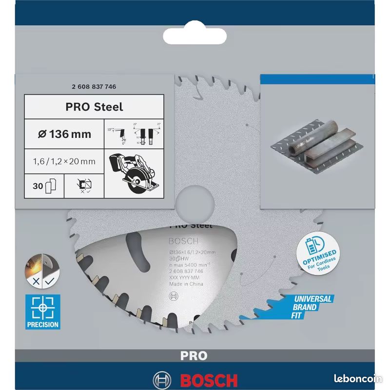 La conception à angle de coupe négatif réduit la friction et la génération de chaleur pendant la coupe, ce qui prolonge la durée de vie de la lame de scie et améliore l'efficacité de coupe. Spécification : Type d'article : Lame de scie Matériau : acier rapide Diamètre : env. La conception à angle de coupe négatif réduit la friction et la génération de chaleur pendant la coupe, ce qui prolonge la durée de vie de la lame de scie et améliore l'efficacité de coupe 20 mm/0,8 pouces Épaisseur : env. Il coupe beaucoup plus rapidement que d’autres produits similaires et peut facilement gérer une variété de tâches de coupe. Matériau de qualité supérieure : ce disque de scie est fabriqué en acier rapide, un matériau offrant une excellente résistance à l'usure et un excellent tranchant. Vitesse de coupe rapide : cette lame de scie circulaire HSS coupe non seulement rapidement, mais présente également une longue durabilité et une haute résistance. Bosch Professional Lame de scie circulaire standard (pour bois, 136 x 20 x 1 ,5 mm, 24 dents, accessoires : scie circulaire sans fil Premièrement, elle est équipée d'une lame de grande taille et de haute dureté, ce qui la rend plus durable et capable de résister à une pression de coupe de haute intensité. Que vous coupiez du bois, du métal, du plastique ou d’autres matériaux, il offre d’excellents résultats de coupe et une grande précision. Cette conception rend la lame de scie plus adaptée à la coupe de matériaux durs. Lame Débroussailleuse De 136 Mm, Disque De Coupe En Acier Rapide, Coupe En Fer Métallique à 30 Dents Pour Scies Circulaires, Onglets, Tables Lame De Scie Circulaire Lame de sce crculare BOSCH pour fnton mult-matéraux, 254 x 30 x... Conceptions spéciales : cette lame de scie circulaire utilise une série de conceptions spéciales pour garantir ses excellentes performances et sa fiabilité. Qu'il s'agisse de couper du bois, du métal ou du plastique, il accomplit la tâche rapidement et avec précision, économisant ainsi un temps et une énergie précieux aux utilisateurs.