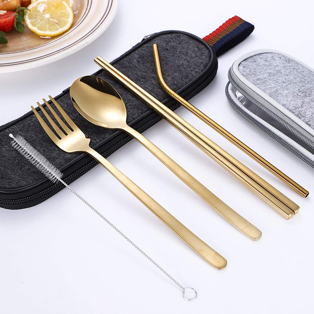 Facile à nettoyer, va au lave-vaisselle. ♪ Ensemble d'argenterie portable de 8 pièces avec étui - comprend couteau à dîner, fourchette à dîner, cuillère à dîner, baguettes, paille droite, paille pliée, brosse de nettoyage, étui de transport pour couverts. ♪ Ensemble d'ustensiles polyvalent en acier inoxydable pour le camping, les voyages, le bureau, l'école, le collège, la voiture, le lieu de travail, manger sur le pouce, voyage en sac à dos, pique-nique, randonnée pédestre et plus encore dans ou en plein air. Couverts De Camping, Voyage 8Pcs Ustensile Portable Ensemble De... ♪ Santé: Les couverts de voyage portables sont fabriqués en acier inoxydable antirouille de haute qualité. Notre ensemble de couverts de vaisselle moderne est de petite taille et léger, ce qui le rend facile à transporter. Une bonne qualité à prix abordable. Avec une fermeture à glissière robuste améliorée, ce couverts est un incontournable pour une utilisation quotidienne. L'étui de transport à l'intérieur de la doublure est fait d'une feuille d'aluminium étanche, facile à nettoyer. Cet ustensile réutilisable avec étui vous permet de profiter de chaque repas où qu'il soit à l'intérieur ou à l'extérieur pendant votre voyage. MENAGERE,Black--Service de vaisselle de voyage en acier inoxydable, 8 Kit Couverts Nomade Services De Table,Ensemble De Couverts En Paille Réutilisables 8 Pièces- Ensemble,cuillère De Voyage,fourchette - Type Rose - Maison Couvert Portable MENAGERE,Rose Gold Set--Couverts de voyage en acier inoxydable 18-8, 4... ♪ Design classique: ensemble d'ustensiles antirouille et durable avec un aspect simple, des bords lisses, anti-oxydation, élégant et généreux.
