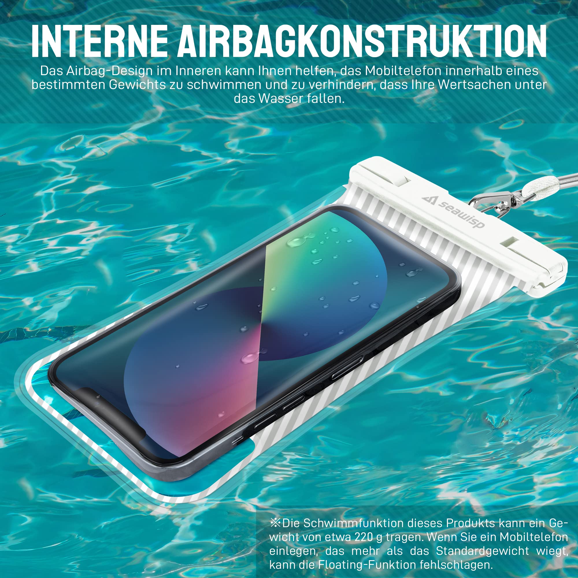 Seawisp Coque étanche Seawag Blanc et Bleu pour smartphone L'étui de téléphone étanche transparent avec devant transparent pour le cou, vous permet d'utiliser votre téléphone librement lorsque vous nagez, plongez, surfez, kayak, pêche, plongée avec tuba, dérive et autres activités aquatiques Coque étanche Seawag Blanc Et Bleu Pour Smartphone - Coque Et étui Téléphone Mobile - Achat & Prix Certifiée IPX8 étanche jusqu'à 25m de profondeur. Elle garde aussi le sable, la poussière et la neige à l'extérieur. L'écran tactile fonctionne parfaitement à...