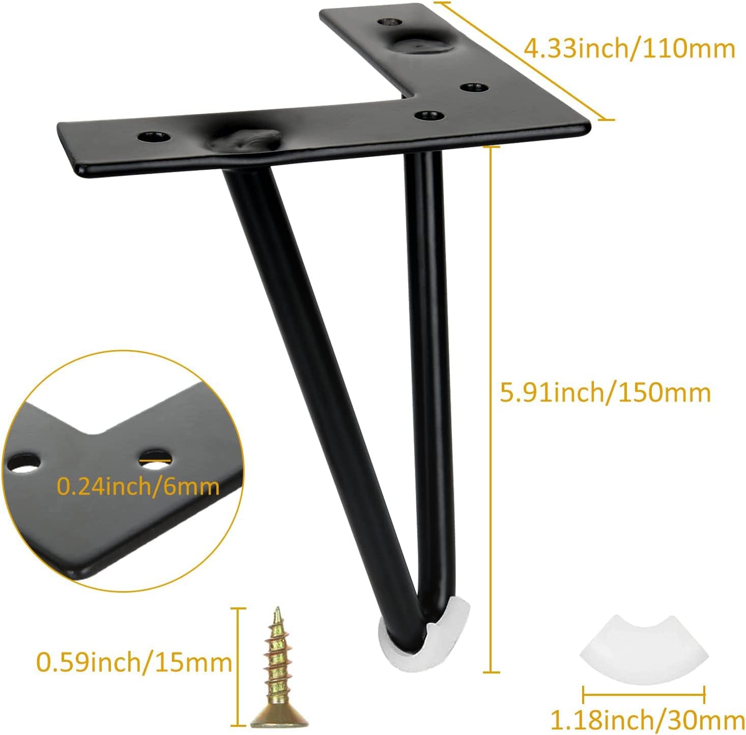 Taille : 10*9CM, distance du trou central 38mmMatériaux de haute qualité : les pieds du canapé sont fabriqués en fer de haute qualité, robuste et durable ; peint par pulvérisation, antirouille, poli en biseau, aucun dommage.Facile à installer : il peut augmenter la hauteur du canapé et changer le style de la maison ; il n'est pas nécessaire d'installer des plaques et l'installation... Description du produit Spécification : Matériel : Fer Taille : 9*9*10 cm/3,5*3,5*4 po Couleur: Noir Quantité: 4 Pièces Fonctionnalité : Fabriqués en fer robuste, les pieds de l'armoire sont robustes et durables. Le style européen à la mode est le choix idéal pour décorer votre maison. 4 Pieds De Table Basse Industrielle, Pied Épingle 10Cm- 4In, Pied De Meuble Métal Noir Avec Vis Pieds De Meuble Lot De 4 Pièces Moderne Pied De Table, Pied Meuble Épingle, Pied Pied Table Basse [Matériaux de Haute Qualité]: Les pieds du canapé du meuble sont en fer de haute qualité, robuste et durable; peinture en aérosol écologique, antirouille, polie en biseau, aucun dommage. [Design Creux élégant] :Un design creux élégant peut décorer vos meubles et leur donner un nouveau look. [Facile à Installer] : Il peut augmenter la hauteur du canapé et changer le style de la maison ; il n'est pas nécessaire d'installer la planche et les pieds des meubles sont très faciles à installer, essentiellement sans aucune technologie. pour remplacer les pieds anciens/endommagés ou les canapés de bricolage., Remarque : 1., En raison des différentes méthodes de mesure, il y aura un écart de 1 à 2 cm., 2., En raison de la différence entre les différents moniteurs, l'image peut ne pas refléter la couleur réelle de l'article., 3., Après l'installation, veuillez vérifier soigneusement si l'installation est ferme pour éviter les blessures accidentelles dues à des erreurs d'installation. Largement utilisé dans les meubles, tels que les armoires, les canapés, les tables basses, les meubles de télévision, les lits, les armoires, les meubles de bureau, etc. Matériaux de Haute Qualité]: Les pieds du canapé du meuble sont en fer de haute qualité, robuste et durable; peinture en aérosol écologique, antirouille, polie en biseau, aucun dommage.