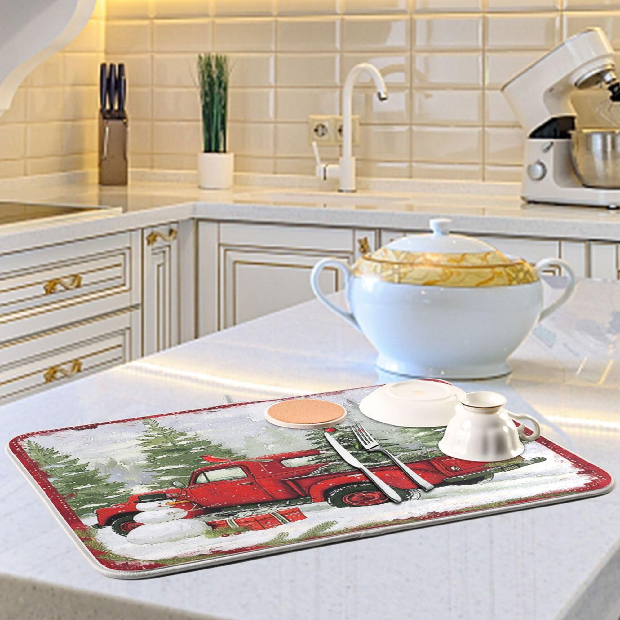 Séchage rapide : le tissu éponge en microfibre de l'autre côté absorbe 4 fois son poids en eau, garde facilement votre comptoir au sec. Notre tapis de séchage aspirera tous les restes d'humidité de vos casseroles, poêles et plats, et laissera le dessous sec. Microfibre absorbante, dans un design à 3 couches offre un toucher doux. Facile à entretenir : lavable en machine, ne pas utiliser d'eau de Javel ni sécher au sèche-linge, laver avec des couleurs similaires – Cette construction en microfibre absorbante a un noyau flexible qui ne s'affaiblit pas au lavage. Tapis de cuisine antidérapant motif sapin de Noël rouge - A2 ✿Conseils d'entretien : Lavable en machine et à la main, séchage à l'ombre. Matériau : impression polyester. Ce tapis de séchage de cuisine d'hiver léger libère de l'espace pour votre cuisine lors de l'utilisation, il suffit de le plier et de le jeter dans un tiroir ou de le ranger ailleurs lorsque vous ne vous en servez pas. Fabriqué en tissu polyester imprimé durable. Un côté est un beau motif de bonhomme de neige rouge, l'autre côté est gris antidérapant. À utiliser seul ou à associer avec un égouttoir à vaisselle. Matériau de Qualité : Le Tapis de Noel est fait de poils de cristal sur la surface, doux et confortable, lavable, facile à nettoyer et durable Antidérapant... Si vous avez des questions ou si vous êtes intéressé par nous, n'hésitez pas à nous contacter, et heureux shopping! Tapis De Séchage Imprimé Notes De Musique Papillon Pour Comptoir De Cuisine 45,7 X 61 Cm Taille : 40,6 x 45,7 cm, convient à la plupart des comptoirs de cuisine, offrant suffisamment d'espace pour contenir de nombreux plats et assiettes... Fabriqué en microfibre, ultra absorbant et rapide. Quels que soient vos besoins, notre tapis de séchage est conçu pour vous protéger. Dimensions du tapis de séchage : 40,6 x 45,7 cm, tapis de séchage de vaisselle de Noël en polyester de haute qualité. Veuillez utiliser un détergent doux neutre pour le détergent. Le tapis de séchage de Noël pour comptoir de cuisine s'adapte à la plupart des comptoirs tout en offrant un look élégant et net.