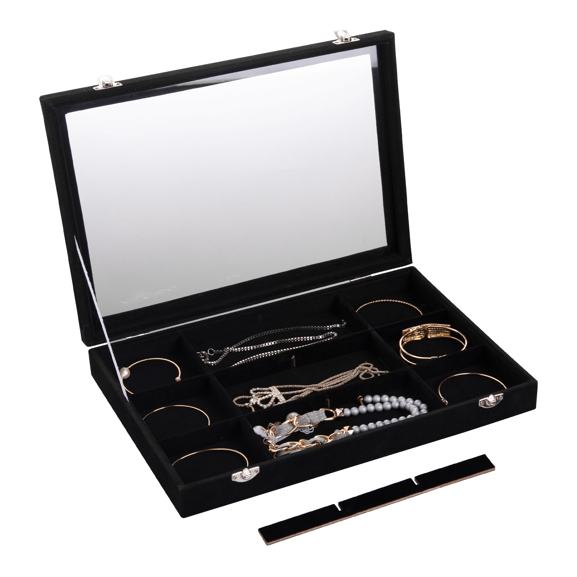 Description du produit Boîte à Bijoux en Velours avec 7 Compartiments et Couvercle, Boîte à Bijoux avec Couvercle en Verre Transparent pour Bagues, Boucles d'oreilles et Boutons de Manchette(Blanc) idéal : vous pouvez envoyer le idéal à votre mère, petite amie, sœur pour un anniversaire, un anniversaire, Thanksgiving, etc. Porte-pinceaux de maquillage doré, verre rond vintage, organisateur de RANGEMENT PRATIQUE] 7 emplacements pour bagues et boucles d'oreilles, chaque emplacement peut contenir jusqu'à 6 pièces.[CONCEPTION DE PROTECTION] Le tissu en velours doux protège les bijoux des rayures avec un panneau composite robuste.[COUVERCLE TRANSPARENT] Couvercle en verre pour une identification rapide des bijoux, conception à double verrouillage pour la sécurité.[MULTI... Excellent matériau : l'étui combine de l'acrylique, du bois compressé et des matériaux en velours doux, permettant un transport facile. Collier Pour Porte Bijoux Présentoir à Bijoux En Velours, Porte-Bijoux Exquis, Portable, Bague, Boucles D'Oreilles Rangement Pour Bijoux En Bois Grande capacité : la conception à 7 emplacements garantit une grande capacité pour vos accessoires tels que boucles d'oreilles, bracelets, colliers, etc., Fonctionnalité : 1., Porte-bijoux : avec de jolies couleurs et un design élégant, le porte-bijoux garde tous vos objets en ordre., 2., Meilleure présentation : adopte un couvercle transparent, la boîte à bijoux ne permet pas de stockage de poussière et une meilleure présentation des jolis bijoux., 3., Grande capacité : la conception à 7 fentes garantit une grande capacité pour vos accessoires tels que boucles d'oreilles, bracelets, colliers, etc., 4., Excellent matériau : l'étui combine de l'acrylique, du bois compressé et des matériaux en velours doux pour un transport facile., 5., idéal : vous pouvez envoyer le idéal à votre mère, petite amie, sœur pour un anniversaire, un anniversaire, Thanksgiving, etc. Liste des packages : 1 fois boîte à bijoux Spécification : Type d'article : boîte à bijoux Matériau du produit : acrylique, bois compressé, velours. Porte-pinceaux de maquillage doré, verre rond vintage, organisateur de...