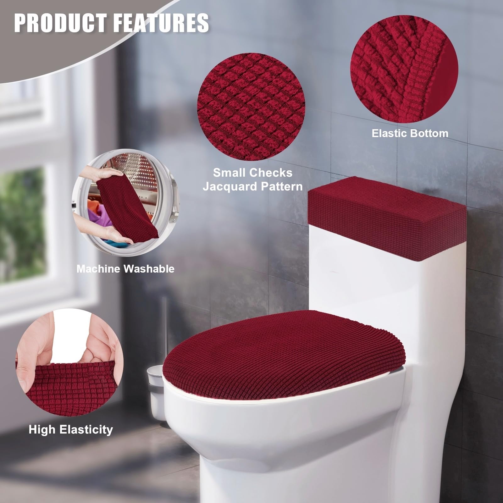 Housse de siège de toilette, BOENFU Protège lunette de wc, épaisse et douce de luxe, Extensibles Protection complète : la housse de couvercle de toilette et la housse de protection du réservoir de toilette sont conçues avec un fond élastique, qui peut être fermement fixé sur le réservoir et ne glisse pas facilement et peut prévenir efficacement la poussière, les taches et autres dommages au réservoir des toilettes, réservoir de... Maiyoinou Lot De 2 Housses De Couvercle De Réservoir De Toilettes