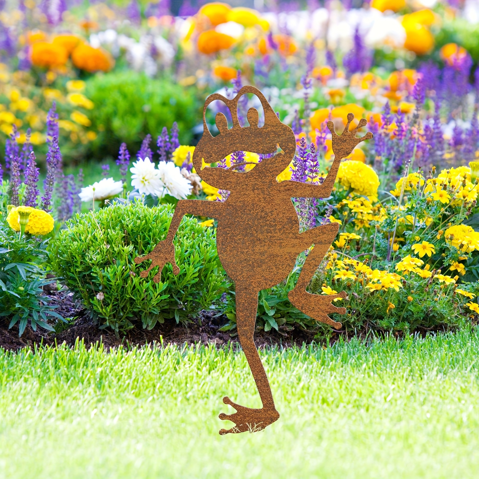 Grenouille métal – Jardin au Carré La Boutique Cette grenouille est une belle décoration pour la maison et le jardin. Une légère différence de couleur et de mesure est possible. Grenoulle en métal recyclé pent/objet déco de jardn/déco ntéreur Décoration Jardin Extérieur Piquet De Jardin Piquet De Lit De Grenouille Piquet De Pot Abeille Métal Rouillé Grâce à la bonne finition, vous pouvez placer la figurine décorative en rouille toute l'année, même par temps froid et gel, dans votre jardin. Finition de qualité supérieure pour ce produit fait main. Vos avantages : design intemporel, longue durée de vie, patine individuelle en patine patine unique – chaque pièce est unique. Cette décoration de jardin rustique en patine est un bel accessoire pour votre jardin. Décoration de jardin grenouille en métal rouillé - 118 cm de long - Motifs : environ 53 cm de haut x 34 cm de large. Magnifique décoration de jardin, réalisée dans un style ancien. Fabriquée en fer. Le poids est 0,5kg. Style Style antique. Matériau Fer. Modèle réduit. Couleur... Travail très soigné.