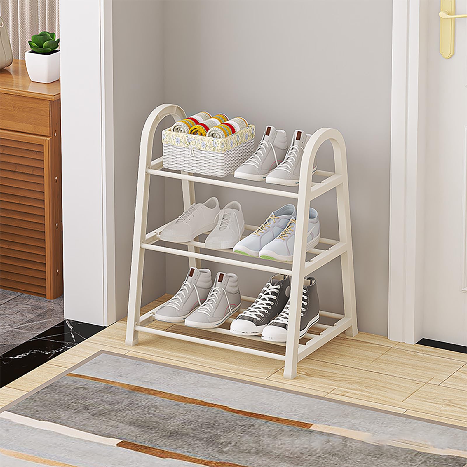 Étagère fine 4 niveaux Optimisez votre espace avec l'étagère à chaussures fine CHEMPFR Vous en avez assez des entrées encombrées ? Notre étagère à chaussures étroite à 3 niveaux combine un design minimaliste avec une fonctionnalité robuste. Utilisation polyvalente : de l'organisation des équipements de gym dans les dortoirs à l'affichage de livres de cuisine dans les cuisines, le dessus en bois ajoute à la fois utilité et style. Étagère à Chaussures En Métal à 3 Niveaux Pouvant Contenir Jusqu A 10 Paires De Chaussures Organisateur De Chaussures Pour Salon Entree Ou Dressing 98993398 Etagere Chaussure Costway Étagère à Chaussures étroite à 3 Niveaux Pour Entrées, Couloirs Et Etagere Chaussure Conforama Minimalistes qui apprécient la forme et la fonction. Maille respirante et antidérapante : les panneaux en maille d'acier permettent la circulation de l'air pour éviter les odeurs, et les bords surélevés maintiennent les chaussures bien en place, idéal pour les baskets, les chaussures plates ou les chaussures pour enfants. Durabilité hybride en acier et bois : cadre en acier robuste avec revêtement résistant à la rouille, tandis que le dessus décoratif en bois ajoute un charme rustique et sert également d'étagère pour les clés ou les plantes. Parfait pour : appartements urbains avec une superficie limitée. Points forts techniques : dimensions : 41,5 x 30 x 50 cm (L x l x H) (3 niveaux) – Compact mais spacieux. Étagère à chaussures fine peu encombrante avec assise en tissu... Construction de qualité industrielle : le cadre en acier renforcé et les joints emboîtables garantissent une stabilité sans oscillation, même sur des sols inégaux.