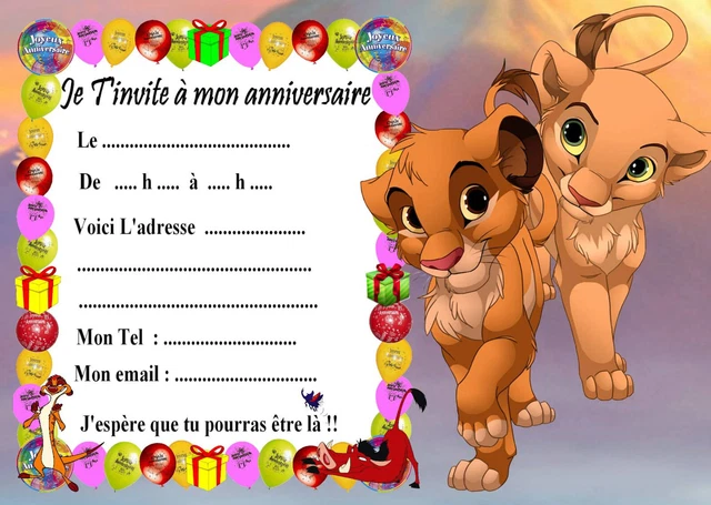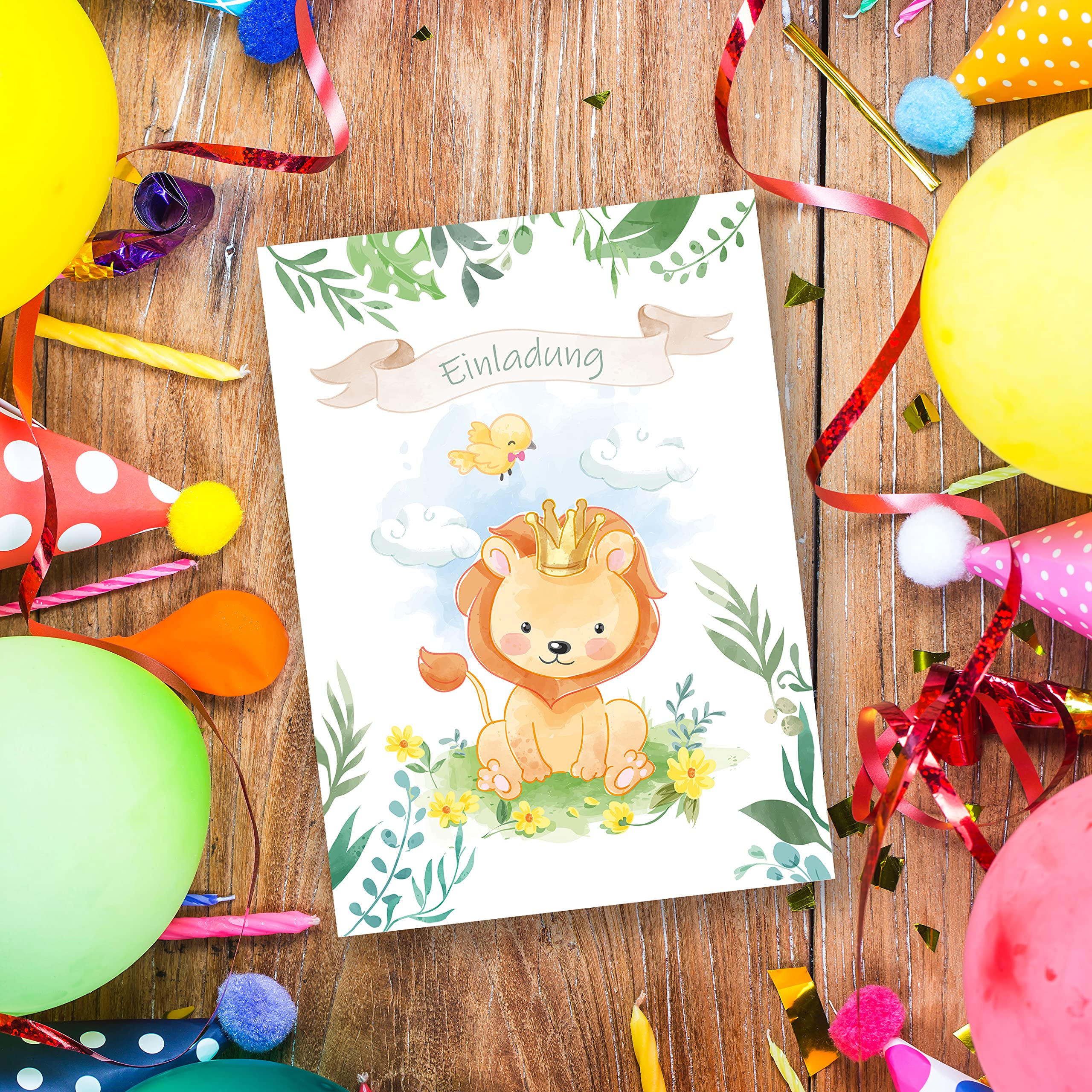 Cartes d'invitation spécialement conçues pour vos enfants., Enveloppes assorties incluses., Contenu : 10 cartes , Dimensions : 10,5 x 14,8 cm 300 g - Impression brillante de qualité supérieure , Fabriqué en Allemagne Imprimé des deux côtés Description Cartes d'invitation uniques et personnalisées développées et imprimées en Allemagne. Il ne s'agit pas d'un produit de masse. Cartes d'invitation spécialement conçues pour vos enfants. Enveloppes assorties incluses. Contenu : 10 cartes Dimensions : 10,5 x 14,8 cm 300 g - Impression brillante de qualité supérieure Avec Enveloppe ... Dimensions de la carte d'anniversaire : 10 x 15 cm ... Lot De 12 Cartes D'Invitation Pour 3Ème Anniversaire D'Enfant - Motif Panda Lion Et Tigre... Carte Invitation Anniversaire Lion Cartes D'Invitation Anniversaire Enfant Yhjxly - Lot De 10 | Motif Lion/Singe Jungle | Pour Fête, Baptême Invitation Anniversaire Roi Lion Etiquette à dragées petit lion