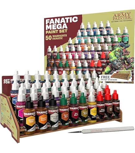 Fraîcheur longue durée : le bouchon Smart Twister préserve la qualité de la peinture pour garantir que vos peintures restent fraîches et prêtes pour une utilisation immédiate Les peintures Fanatics Warpaints offrent plus que de la commodité, elles offrent également un temps de loisirs prolongé. Le compte-gouttes sans déversement assure un contrôle précis du dosage, vous permettant d'appliquer la quantité idéale de peinture à chaque goutte. Profitez de plus de jeux et moins de peinture avec notre formule à séchage rapide et notre application lisse. PEINTURES DE DISTORSION acryliques The Army Painter : 18 ml peinture Passez moins de temps à chercher la bonne teinte et plus de temps à donner vie à vos miniatures. Warpaints Fanatic : Metallics Paint Set est un kit de peinture qui contient 10 peintures Metallic issu de la toute nouvelle gamme de peinture Warpaints Fanatic de The Army Painter. Conçues pour les amateurs de jeux et les amateurs, ces peintures de qualité offrent un mélange homogène de caractéristiques exceptionnelles et d'avantages inégalés. Et avec le bouchon Smart Twister inclus, vos peintures restent fraîches et prêtes à être utilisées immédiatement, préservant leur qualité pour les futurs projets. Alors pourquoi se contenter de peintures ordinaires lorsque vous pouvez passer à l'extraordinaire ? Transformez vos miniatures et libérez votre créativité avec Fanatics Warpaint de The Army Painter. Grâce à des mesures écologiques concrètes, nous contribuons à réduire autant que possible l'impact sur l'environnement. Vous trouverez ici de plus amples informations. Avez-vous besoin d'aide pour votre commande ? N'hésitez pas à nous poser vos questions. The Army Painter - Peintures Warpaints Fanatic. Livraison gratuite à partir de 54,90 Temps de passe-temps prolongé : profitez de plus de jeux avec une peinture rapide et lisse et passez moins de temps à peindre et plus de temps à profiter de votre passe-temps Conçus pour offrir une couverture inégalée tout en étant incroyablement faciles à utiliser, avec une pigmentation intense et dans un système de triade de couleurs flexible, les Warpaints Fanatic sont la nouvelle référence en matière de peintures miniatures Que vous soyez un professionnel chevronné ou que vous soyez débutant, nos peintures permettent d'obtenir facilement des résultats étonnants en moins de temps. Sélection des couleurs sans effort : la dénomination pratique facilite l'identification qui vous fera gagner du temps et améliorera le flux de travail avec des choix de couleurs simplifiés C'est pourquoi notre système de nommage pratique facilite la sélection des couleurs. Peinture Acrylique The Army Painter Warpaints Fanatic: Metallics Paint Set Combo, 10 War Paints Miniature Paint Avec notre boule de mélange innovante incluse, obtenir une précision dans le mélange des couleurs n'a jamais été aussi facile.