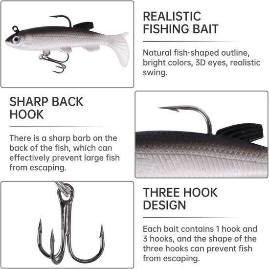 Soigner ses leurres - Peche et Poissons Carnassiers, carpe, truite, mer, coup. T RNHDLY 10 Pièces Leurre Souple pour Brochet Truite Bar, Leurre Souple... Leurre De Verite Toygogo 12pcs Realistic 3D Fishing Lure, Swimbait Soft Lure Peche Carnassiers La description: Ensemble de leurres de pêche souples 12 pièces, avec queue de pagaie, actions de natation comme la vie.Il peut être pêché sur des hameçons lestés, des gréements, des appâts tournants, des hameçons à tête plombée.Convient pour le doré jaune d'eau douce et d'eau douce et plus encore.Fabriqué en matière plastique...