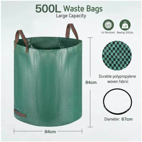 Bord à couture épaisse double couche Il est plus ferme et ne vous inquiétez pas de tomber. Poignées de transport robustes Poignées de transport robustes (2 supérieures et 2 inférieures) Facile à soulever, à transporter et à vider. 2pcs sacs de jardin avec couvercle 120L,ITOOBE Pour déchets verts, Pliable avec poignées, Sac à Artillen Lot de 2 sacs à déchets de jardin de 120 L - Sacs à feuilles... Vous pouvez également utiliser les sacs pour une variété de stockage, tels que garder votre coffre de voiture bien rangé, comme un sac à linge ou des jouets. Grande capacité : nos sacs pour feuilles de pelouse ont une capacité maximale de 200 litres. Utilisation universelle le sac d chets de jardin est le meilleur choix pour les d chets recyclables, les feuilles, les branches, l'herbe et d'autres d chets de jardin. Multifonctionnel : les sacs de jardin réutilisables conviennent non seulement pour les travaux de jardin comme la haie, mais également pour stocker des légumes, des fruits, des jouets, des vêtements, du recyclage et tout ce que vous voulez ranger. Et 136,1 kg, vous pouvez nettoyer les feuilles, l'herbe, les racines, les plantes, la paille de foin et bien plus encore. Respectueux de l'environnement, léger, durable, indéchirable, résistant aux UV et imperméable. Sac Cours Artillen Sacs De Jardin Réutilisables Pour Feuilles De Jardin, Pelouse Sac Jardinage Dechets Capacit nos sacs feuilles de pelouse ont une capacit maximale de 200 litres. Dimensions de l'article (L x l x H) 65 x 65 x 65 cm, vous pouvez nettoyer les feuilles, l'herbe, les racines, les plantes, la paille de foin et bien plus encore. Fabriqué en tissu tissé de polypropylène solide de 150 g/m².