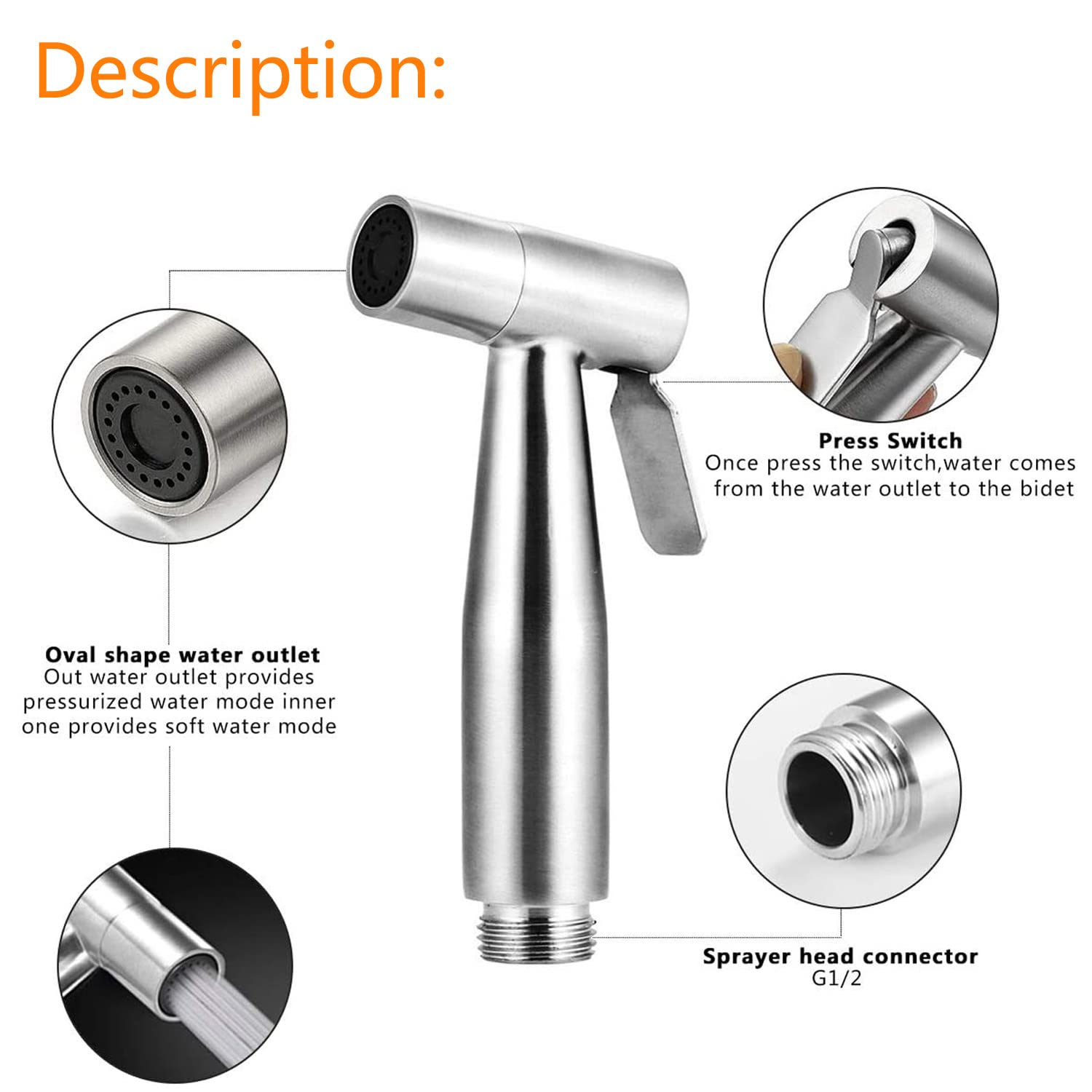 Matériau : acier inoxydable., Dimensions : 5 x 12 cm., Couleur : argenté. Tête De Douchette Wc Inoxydable Pulvérisateur De Bidet à Main Pour Toilette Pour Douche Salle De Bain Hygiene Papier Toilette Nettoyage Des Couches Pulverisateur Seulement Couleur Argent 90983802 Contenu de l'emballage : vous recevrez 1 tête de pulvérisateur de bidet de toilette, argentée. Boku Toilette Japonaise ZVD-2 Pièces Pulvérisateur De Bidet,Douchette Wc,kit De Pulvérisateur Bidet Toilette Wc Matériau : la tête de pulvérisation de bidet à main a une finition brossée pour une meilleure résistance à la rouille et est plus facile à entretenir et à utiliser. Toilette Bidet Spray,Haute qualité acier inoxydable douchette Bidet... Largement utilisé : le robinet pulvérisateur de toilettes est très approprié pour toute la famille, en particulier le nettoyage des couches en tissu de bébé, le nettoyage des animaux, le bidet, le nettoyage personnel, le nettoyage de voiture, le nettoyage d'hygiène intérieure, le jardinage, etc. Il peut être nettoyé très facilement. Remarque : Les mesures étant prises à la main, les tailles indiquées peuvent varier légèrement.