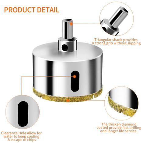 Foret Diamant Pour Scie Cloche En Verre Avec Foret De Positionnement Central Pour Verre Ceramique Porcelaine Carrelage 30 Mm 78452718 CONCEPTION SP CIALE - Le c t ouvert peut liminer les d chets pour garder le foret propre. Attention : cette scie cloche en verre doit être utilisée à basse vitesse, environ 800 à 1000 r par minute. Description : La pointe de coupe avec des particules de diamant de qualité AAA offre une coupe nette, l'efficacité de la coupe sera considérablement améliorée., Nickelé. Sourcing map Foret Scie Cloche enduit de diamant de 130 mm Trépan pour... Utilisation d'une scie cloche TAILLE - Diamètre de perçage de 120 mm (4,7 pouces), diamètre de tige de 9 mm (0,35 pouce). (Doit tre utilis basse vitesse, environ 800-1000 tr min ; veuillez ajouter des liquides de refroidisement ou de l'eau lors du traitment), APPLICATIONS - Parfait pour percez le verre, les carreaux, les bocaux, les carreaux de porcelaine en fibre de verre, la c ramique, le marbre en ardoise, etc. Afin de prolonger la durée de vie de cette scie cloche en verre, lors du traitement, veuillez l'ajouter dans des liquides de refroidissement ou de l'eau. Excellents résultats et carrelage. Scie Cloche 150mm Sourcing Map Foret Scie Cloche Enduit De Diamant De 120 Mm Scie Cloche 100mm Résistance aux petites incisions, augmente la vitesse de coupe des trous, facile à décorer après rainurage et facile à nettoyer. Veuillez commencer votre trou en diagonale, faire une trace ronde et ensuite maintenir la perceuse droite. Travailler sans refroidissement est interdit. REVÊTEMENT DIAMANT - Le revêtement diamant améliore la vitesse de perçage, ce qui rend le foret plus tranchant. CONCEPTION SPÉCIALE - Le côté ouvert peut éliminer les déchets pour garder le foret propre.