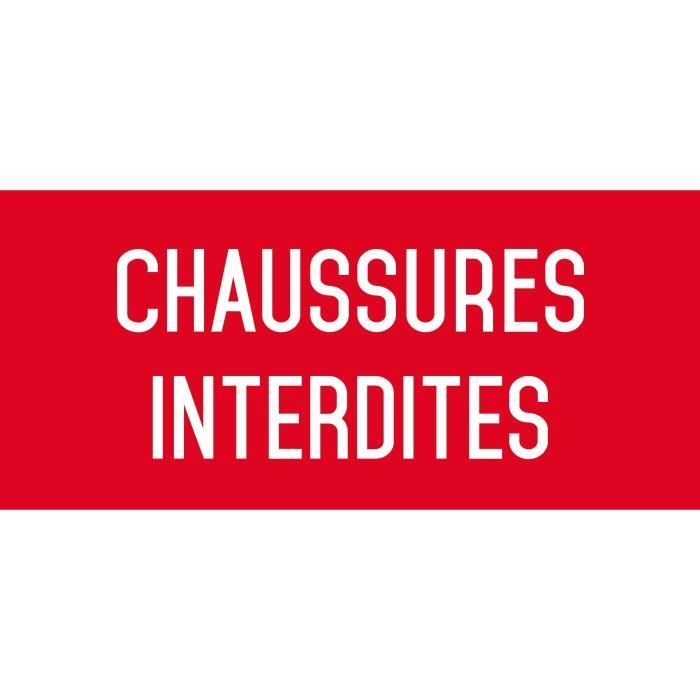 Durabilité optimale avec des couleurs et un vernis UV : Les couleurs spéciales et le vernis UV appliqués garantissent que cet autocollant conserve sa netteté et ses couleurs vibrantes, même sous l'exposition au soleil et aux éléments. Sticker interdit port de chaussure Panneau réalisé en support adhésif souple. Facile à mettre en œuvre sur toutes surfaces planes et propres.Encres traitées anti-UV pour une excellente durée... Stop Pub Panneau Ou Autocollant Chaussures Crampons Interdites (REFE604) - Sticker Communication Autocollant Interdit De Stationner Pose facile : il est facile à poser. PANNEAU CHAUSSURES INTERDITES (D1063) 350 x 125 mm Matière PVC | Leroy... Résistant à l'eau pour une utilisation en intérieur et en extérieur : Cet autocollant en vinyle est spécialement conçu pour résister aux intempéries, ce qui le rend idéal pour une utilisation à la fois en intérieur et en extérieur. Il est le fruit des éditions UTTSCHEID, une marque réputée. Fabrication française de qualité : Cet autocollant est fabriqué en France, gage de qualité et de savoir-faire. Sticker Chaussures de ville interdites 100X100mm Commandez en ligne impression signalétique sécurité, identification, incendie, Fabricant français et solutions de signalisation sur mesure - 04 76 26 20 11.
