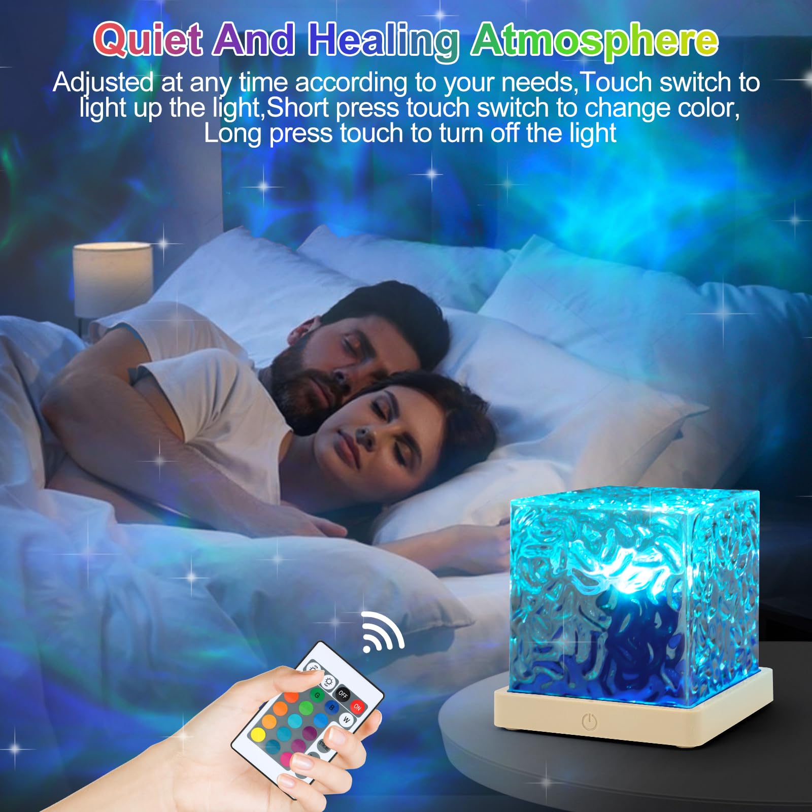 【Easy Use】 (Utilisation facile) Notre projecteur de lumière à vagues est livré avec une télécommande qui vous permet de changer librement 16 couleurs, d'ajuster la luminosité, de basculer entre le saut, la stroboscopie, l'évanouissement, l'évanouissement en douceur et d'autres effets de lumière. Lorsque vous allumez la lampe Galaxy dans l'obscurité, vous aurez l'impression d'être entouré par l'immensité de l'océan. Le projecteur de ciel étoilé pour enfants vous offre une excellente qualité de sommeil et vous permet de profiter d'une nuit sans précédent, paisible et confortable La lumière apaisante vous étreint comme les bras d'un ange gardien. 【Effets de lumière colorés】 La lampe de projection Galaxy présente un design cubique unique avec 5 surfaces d'émission lumineuse qui éclairent la chambre à coucher à 360 degrés. Cadeau idéal pour la célébration de la famille / fête / mariage / anniversaire / décoration de la chambre. La lampe à projection Galaxy crée une atmosphère sereine et romantique dans votre chambre, permettant à votre esprit fatigué de trouver un port paisible. LOUHH Projecteur Galaxie, Projecteur Aurore BoréAle - 16 DéGradéS De Qu'il s'agisse d'un anniversaire, de vacances, d'un festival ou de toute autre occasion spéciale, il apportera des surprises sans fin à vos enfants, vos amis, votre famille ou vos proches. Convient pour la chambre à coucher, le salon, le barbecue extérieur, l'arrière-plan sur place, créant une atmosphère magnifique lors de la prise de selfies. Pour les enfants, ce projecteur de lumière stimulera leur imagination et leur créativité, leur permettant de jouer dans un monde magique d'ombres et de lumières. Lampe Projecteur Etoile, 16 Couleurs Projecteur Aurore Boréale, Cube Projecteur Ciel Projecteur Ciel Etoile Lampe projecteur étoilé Aurore Boréale LED... 【Unique Artefacts & Gifts】 Fabriqué à partir d'acrylique et de bois exquis, le projecteur Starlight est un mélange parfait de design sophistiqué et de technologie moderne. Grâce à la télécommande, vous pouvez choisir vos effets lumineux préférés.