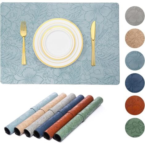Avec chaque produit, nous célébrons la magie de la famille et honorons les traditions qui nous unissent tous., Conseils : 1., L'odeur sur le tapis se dissipera avec une journée de séchage naturel., 2., Rangez le tapis en toute sécurité avec nos sangles fournies lorsque vous ne vous en servez pas. Lorsque vous le réutilisez, recourbez-le dans le sens opposé pour le remettre rapidement à plat. Utilisation polyvalente : idéal pour diverses occasions comme la fête des mères, Noël, le Nouvel An, les anniversaires et Thanksgiving, ces sets de table améliorent n'importe quel décor de salle à manger Polyvalent et élégant : nos sets de table sont adaptés pour une expérience quotidienne en intérieur et en extérieur, idéal pour les pique-niques, les fêtes, les dîners, le bureau. Imperméable et résistant à l'huile : recouverts d'une surface imperméable et résistante à l'huile, nos sets de table sont faciles à nettoyer, résistants aux rayures et aux taches, améliorant l'élégance de n'importe quelle table. Résistance à la chaleur de qualité supérieure : notre lot de 6 sets de table mesure 43,2 x 30,5 cm et 2 mm d'épaisseur, fabriqué en cuir synthétique de pointe, doux au toucher et non toxique, et peut facilement résister à la chaleur jusqu'à 100 ℃, protégeant efficacement votre table à manger, vos meubles contre les assiettes chaudes et les déversements. Nom du produit : lot de 6 sets de table Qixovren en simili cuir motif floral., Dimensions : 43,2 x 30,5 cm., Couleur : bleu clair., Épaisseur : 2 mm. Notre motif est simple et élégant, il peut également être utilisé comme tapis d'ordinateur portable, sets de table d'extérieur, tapis de vaisselle, etc. Histoire de la marque : Qixovren se consacre à favoriser les liens familiaux à travers des repas partagés, symbolisant l'amour, la convivialité et la joie de créer des souvenirs avec vos proches. APLKER Lot de 6 sets de table en siilicuir résistant à la chaleur pour... Ils font le cadeau parfait pour les amis, la famille et les partenaires pour les vacances comme Noël et Thanksgiving, créant de merveilleux moments ensemble. Set De Table Lot De 6 En Similicuir 100 % Imperméables Et Résistants à La Chaleur, Faciles à Nettoyer, En Vinyle, Lavables Pour Intérieur Et Sets De Table Idées cadeaux pour les amoureux de la famille : emballés en lot de 6, ces sets de table de cuisine sont un cadeau attentionné pour les amis et la famille lors de vacances comme Noël et Thanksgiving, couverts par une garantie de 12 mois. Résiste à des températures allant jusqu'à 100 °C, protégeant votre table de salle à manger des assiettes chaudes et des déversements. Facile à nettoyer et à ranger : nos sets de table peuvent être lavés avec une solution savonneuse ou de l'eau et peuvent être recyclés. Polyvalents et élégants : adaptés pour les repas en intérieur et en extérieur, nos sets de table résistants à la chaleur ajoutent de la sophistication à toutes les occasions. Lot de 6 sets de table en similicuir avec dessous de verre