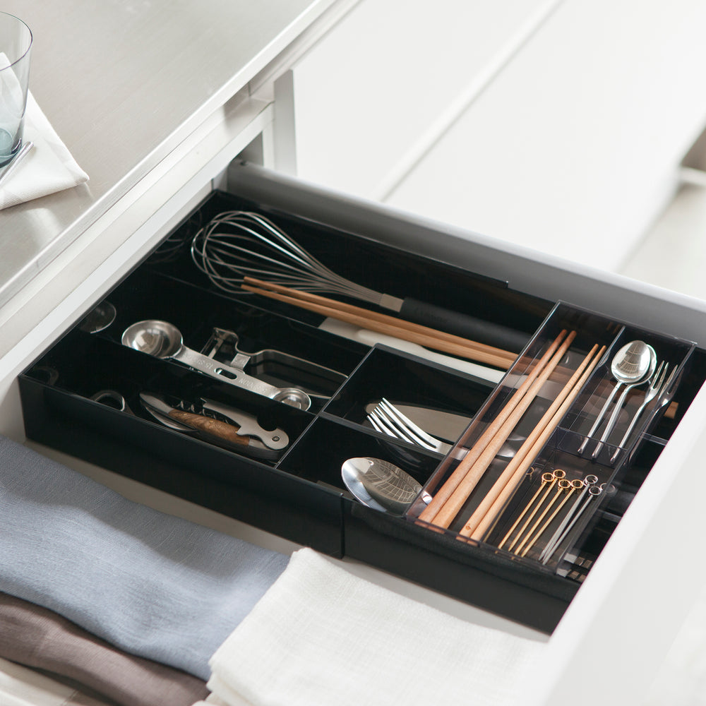 Plus besoin de chercher le bon outil, tout ce dont vous avez besoin est à portée de main. Améliorez vos besoins de maison avec le meilleur organisateur d'ustensiles pour tiroirs de cuisine sur le marché. Le design élégant et la finition noire en font un ajout élégant à n'importe quelle cuisine, tandis que la facilité d'utilisation améliore votre expérience de cuisine générale. Cet organiseur polyvalent est livré avec deux panneaux extensibles à gauche et à droite pour stocker plus d'argenterie, de couverts et d'ustensiles de... Améliorez votre jeu d'organisation de cuisine avec notre organisateur de tiroir de cuisine polyvalent et pratique. Nous vous présentons les organiseurs de couverts Iopsk – la solution ultime pour organiser vos essentiels de cuisine avec style et efficacité. Ne vous contentez pas de l'ordinaire lorsque vous pouvez avoir une organisation extraordinaire avec les organiseurs Iopsk Flatware. Cet organiseur polyvalent est livré avec deux panneaux extensibles à gauche et à droite pour stocker plus d'argenterie, de couverts et d'ustensiles de cuisine. Rangement des couverts et ustensiles Organisez vos tiroirs à couverts et ustensiles grâce à nos solutions et astuces de rangement dédiées à la cuisine. Selon vos goûts et envies, choisissez des accessoires en bambou, en métal, ou en plastique : l’essentiel est qu’ils vous plaisent, et que leur couleur et matière se marient bien avec votre déco. Les organisateurs et séparateurs... Des cuillères aux fourchettes, notre organisateur de tiroir est conçu pour garder vos ustensiles de cuisine en parfait ordre. Vous en avez assez de lutter avec des ustensiles dépareillés et des tiroirs encombrés ? Notre organisateur de tiroir à ustensiles est là pour sauver la journée. Dites adieu aux tiroirs désordonnés et bonjour à une cuisine magnifiquement organisée avec notre plateau à argenterie innovant. Mettez la main sur le meilleur organisateur de cuisine et solution de rangement dès aujourd'hui Organisateur Plateau à Couverts Organisateur De Tiroir De Cuisine Extensible-plateau à Range Couvert Extensible Lorsqu'elle est entièrement dépliée, la boîte à couverts mesure 56,9 x 38,1 x 5,1 cm et lorsqu'elle est entièrement pliée, elle se réduit à 33 x 38,1 x 5,1 cm. Pour nettoyer, il suffit de rincer à l'eau pour enlever les taches. Gardez vos tiroirs de cuisine bien rangés. Organiseur De Tiroir à Couverts Extensible, Plateau De Tiroir Couverts Extensible Plateau De Tiroir 250228 Fabriqués à partir de matériaux de haute qualité sans BPA, nos organiseurs de couverts offrent non seulement une solution de rangement sûre, mais ajoutent également une touche d'élégance à votre décoration de cuisine. Taille réglable : avec une largeur réglable entre 33 et 56,9 cm, il est compatible avec différentes tailles de tiroirs. Découvrez la commodité d'une cuisine bien organisée avec les organiseurs de couverts Iopsk Que vous soyez à la recherche d'un porte-argenterie, d'un plateau à couverts ou d'un organisateur de tiroir extensible, nous avons ce qu'il vous faut. Vous en avez assez de fouiller dans les tiroirs encombrés pour trouver le bon ustensile ? Ne cherchez pas plus loin que nos organiseurs de couverts de qualité supérieure, conçus pour fournir une solution de rangement transparente pour vos couverts et ustensiles de cuisine. Ne pas laver au lave-vaisselle.