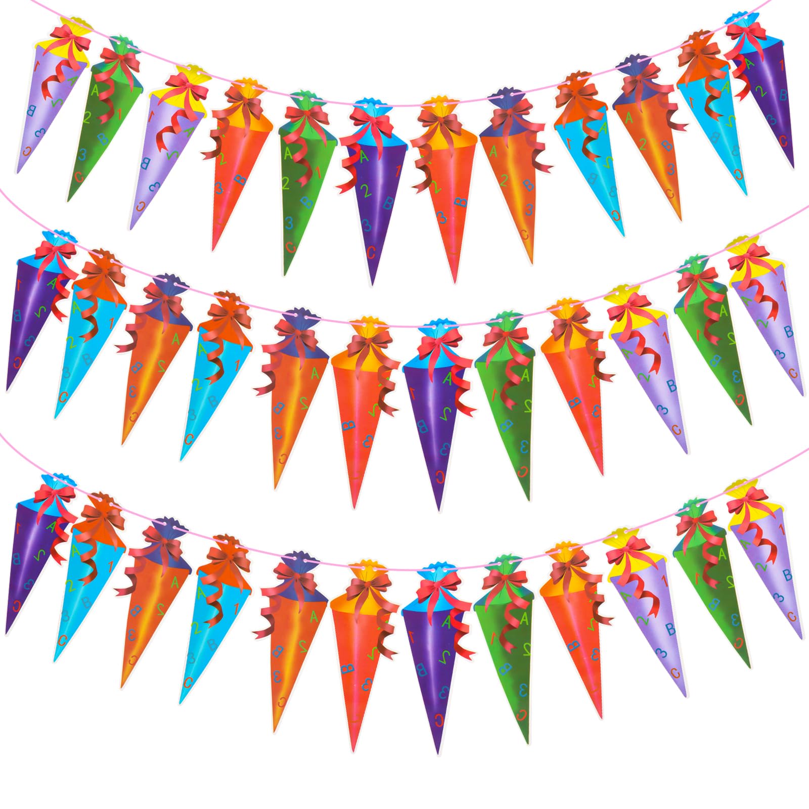 COURONNE DE PORTE De Bienvenue Guirlande Guirlande De Couronne De En guirlande de bienvenue, bannière de bienvenue, banderole, guirlande fete, guirlande fanion, guirlande fanions, fanion, fanions, guirlande papier, fanion anniversaire, guirlande drapeau, bienvenue, décoration de maison intérieur, guirlande happy birthday Description : Notre bannière de cône de sucre mesure 1,5 m de long, chaque cône mesure 8 x 22 cm et contient un total de 3 ensembles de produits, créant une atmosphère joyeuse et innocente Nos décorations de cône de sucre sont bien faites. Mesurant 400 cm de long, cette chaîne de fanions en papier affiche l'alphabet complet de A à Z. Parfait pour la déco de la salle de classe, le long des couloirs... Home Maison Bannière Avec Deux Guirlandes De Drapeaux Élément De Design Carnaval Vacances Ou Festif Anniversaire Nouvel An Guirlande Fanions Personnalisée La guirlande d'Halloween à imprimer Nous vous donnerons une réponse satisfaisante., 1., 🎉 【Contenu de l'emballage】 3 ensembles de bannières en forme de cône de sucre : 3 rubans roses, 36 jolis cônes colorés , 2., 🎉【Taille du produit】Contient 3 ensembles de produits au total, chaque ensemble de taille de produit : guirlande de cône de bonbons 1,5 m, chaque taille de cône est de 8 x 22 cm , 3., 🎉【Artisanat et matériaux de haute qualité】En adoptant un carton de haute qualité, l'impression couleur recto verso des deux côtés est très belle et élégante, vous apportant un meilleur effet festival , 4., 🎉【Facile à assembler】 Nous sommes équipés d'une aiguille à colle filetée, qui peut facilement enfiler le fil dans le trou du cône conique, et l'assemblage est pratique et rapide , 5., 🎉【Large application】 Idéal pour accrocher des décorations pour le lancement de l'école, l'inscription ou la rentrée scolaire et les fêtes d'anniversaire des enfants, ou d'autres occasions appropriées