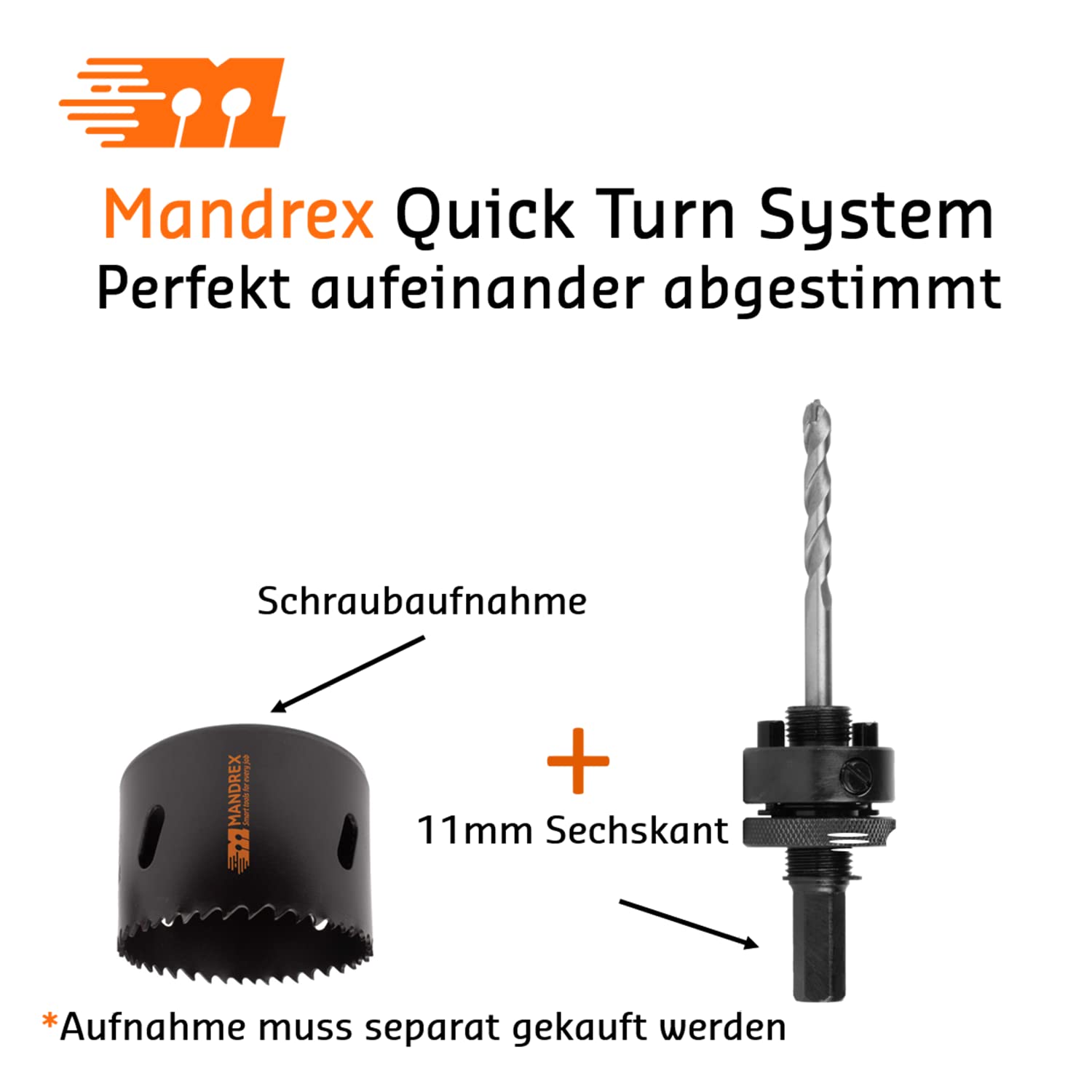 Grâce au développement continu du produit et à de longues phases de test, nos produits répondent aux normes de qualité les plus élevées. Domaines d'utilisation : bois, contreplaqué, MDF, acrylique, plastiques tels que PVC, résine époxy renforcée, acier/fer, acier inoxydable - inox, métal non ferreux Scie-Cloche Bimétallique En Acier Rapide Hss - TRAHOO - 19mm / 0.74inch... Foret de centrage interchangeable pour tous les matériaux Un seul enregistrement pour les grandes et petites scies cloches Quel que soit le diamètre avec lequel vous travaillez, il ne reste plus qu'un seul emmanchement nécessaire. Permet un travail propre et précis. Un adaptateur supplémentaire est nécessaire (MX2P0052HEB) Profondeur de coupe : 45 mm Brevet unique de Mandrex. Plus de deux mandrins pour les grandes et petites scies cloches. Scie-trépan bimétal - Bosch Professional Mandrex Bimetall M3 Lochsäge EasyXcut 105mm (105 Millimètres 4/6 dents par pouce pour des bords nets