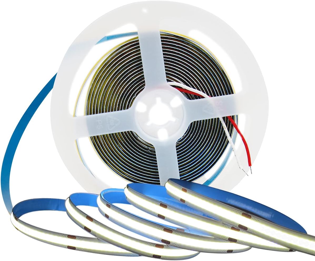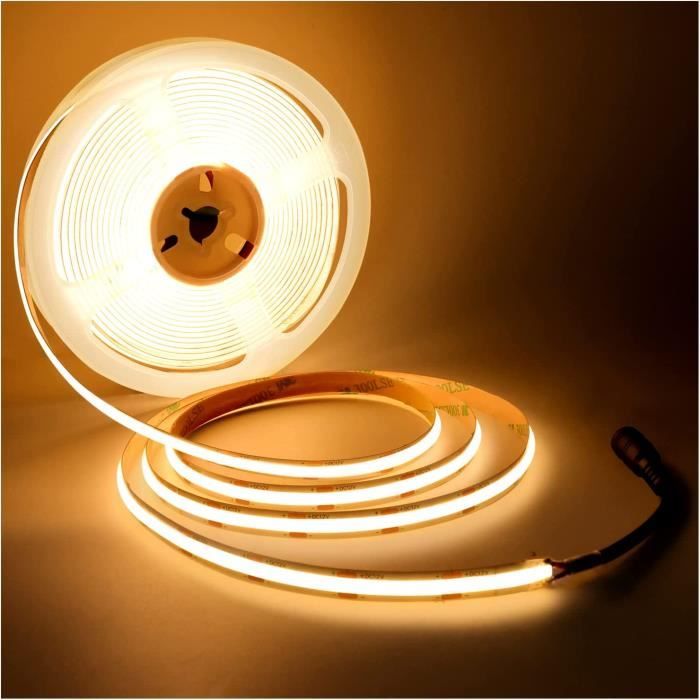 Cela évite d'endommager directement ou indirectement les composants sur le FPC et le FPC, ce qui entraîne une anomalie dans la bande LED., 2., bande adhésive double face pour bande LED avec un adhésif supérieur et une résistance aux intempéries. Nettoyez d'abord la surface, puis l'adapter à toute surface sèche et plate., 3., il y a un point de soudure tous les 2,5 cm sur la bande, ce qui permet de couper à chaque point de soudure. Largeur : 8MM ; Angle de vision : 120 ° ; Wat : 50W ; Niveau d'étanchéité : IP20, Lumens totaux : 5000LM, Dimmable (variateur non inclus). Tesfish Ruban LED 24V COB, 5mm de large ultra fin, Bande LED 5M 480 LEDs-M Total 2400 LEDs Lère Tesfish LED bande de lumière COB, DC 12V 5 mètres de bande LED 480 LEDs / M Blanc Chaud 3000K avec connexion DC Description : Type de LED : Bande de LED COB Couleur : Blanc Chaud 3000K Tension d'entrée : DC 12V Alimentation électrique : 12V 4A Puissance : 50W Longueur de la bande LED : 5m Taille de la prise DC : 5,5*2,1 Longueur de la prise DC : 16cm Largeur du FPCB : 8 mm Angle de vue : 180 °. Superlumineux : la technologie COB permet une densité beaucoup plus élevée du réseau de LED, pas de tache sombre, une puissance plus faible, une efficacité lumineuse plus élevée, un IRC plus élevé (90+). Tesfish Bande LED 12V, 5mm de large, Bande LED 5M 2835 IP20 120 LEDs-M, Total 600LEDs Bande... Pas de rayons ultraviolets et infrarouges, agréable et doux, inoffensif pour vos yeux. La bande lumineuse de la LED COB est uniforme et douce avec un bon effet. Application : 12V COB LED Bande LED Lumière avec connexion DC, Blanc Chaud 3000K 480LEDs / M total 2400 LEDs super lumineux 5 mètres chambre, salle à manger, cuisine, éclairage de fond, jardin, éclairage de fête, économe en énergie et sûr à utiliser. La Ruban LED peut être coupée tous les 2,5 cm. Super lumineux : la technologie COB permet une densité d'emballage beaucoup plus élevée que le tableau de LED, pas de taches sombres, moins de puissance, plus grande efficacité lumineuse, IRC plus élevé (90 Ruban Led 20m Ruban Led Cob 5M Rouge, 12V Bande Lumineuse Led Cri93 Largeur 8 Mm Lumière Flexible Découpable Profile Alu Pour Ruban Led Paquet : 1 × bande LED de 5m (paquet sans alimentation ni variateur)