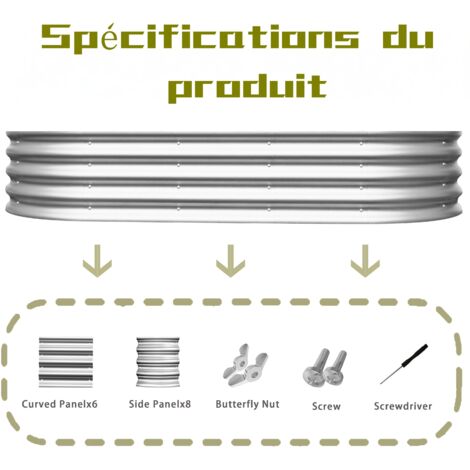 Adoptez le jardinage à hauteur d'homme avec ce lot de deux potagers surélevés au design moderne. Leur couleur anthracite s'intègre parfaitement dans les jardins et sur les terrasses contemporaines. En acier galvanisé, ces bacs sont conçus pour durer et résister à la corrosion. Ils offrent un espace de culture généreux tout en préservant votre dos lors de l'entretien de vos plantes... Il est plus résistant aux températures élevées et au gel, ce qui le rend très approprié pour une utilisation en extérieur. Plus stable que les écrous ordinaires, facile à assembler. Plastique Blanc Bordures, Herbe Pelouse Parterres, Lot De 2 Jardin Clôture Bordure, Intérieur SONGBATE Lot De 2 Parterres De Jardin Surélevés Galvanisés En Métal Pour Fleurs, Légumes, Herbes (argenté) 1,2 X 6,1 X 3 M Garantie du fabricant : nous fournissons un service de retour et d'échange gratuit de 30 jours. Notre service client vous fournira une réponse satisfaisante dans les 24 heures. Si vous avez des questions sur notre jardinière d'extérieur, vous pouvez nous contacter par e-mail. Créez votre jardin de rêve : la taille d'un lit surélevé est de 1,2 x 0,6 x 0,3 m, le volume est de 2,1 m³, ce qui nécessite 53,4 gallons de terre; avec les 2 boîtes de jardin mobiles en métal galvanisé Gartist vous pouvez planter des herbes, des légumes, des fruits et des fleurs n'importe où dans votre jardin. Protégez la croissance des racines : cette jardinière pour l'extérieur est conçue avec un fond ouvert, ce qui peut fournir un bon environnement de croissance pour vos plantes, éviter efficacement l'accumulation d'eau et la pourriture, protéger les racines des plantes et leur permettre de mieux absorber les nutriments. Lot de deux : ces carrés de jardin surélevés en lot de 2 sont conçus en acier galvanisé pour garantir une structure solide et durable, idéal pour vos... L'assemblage ne nécessite pas d'outils, seule une rotation manuelle de l'écrou papillon est nécessaire pour serrer deux tôles galvanisées.
