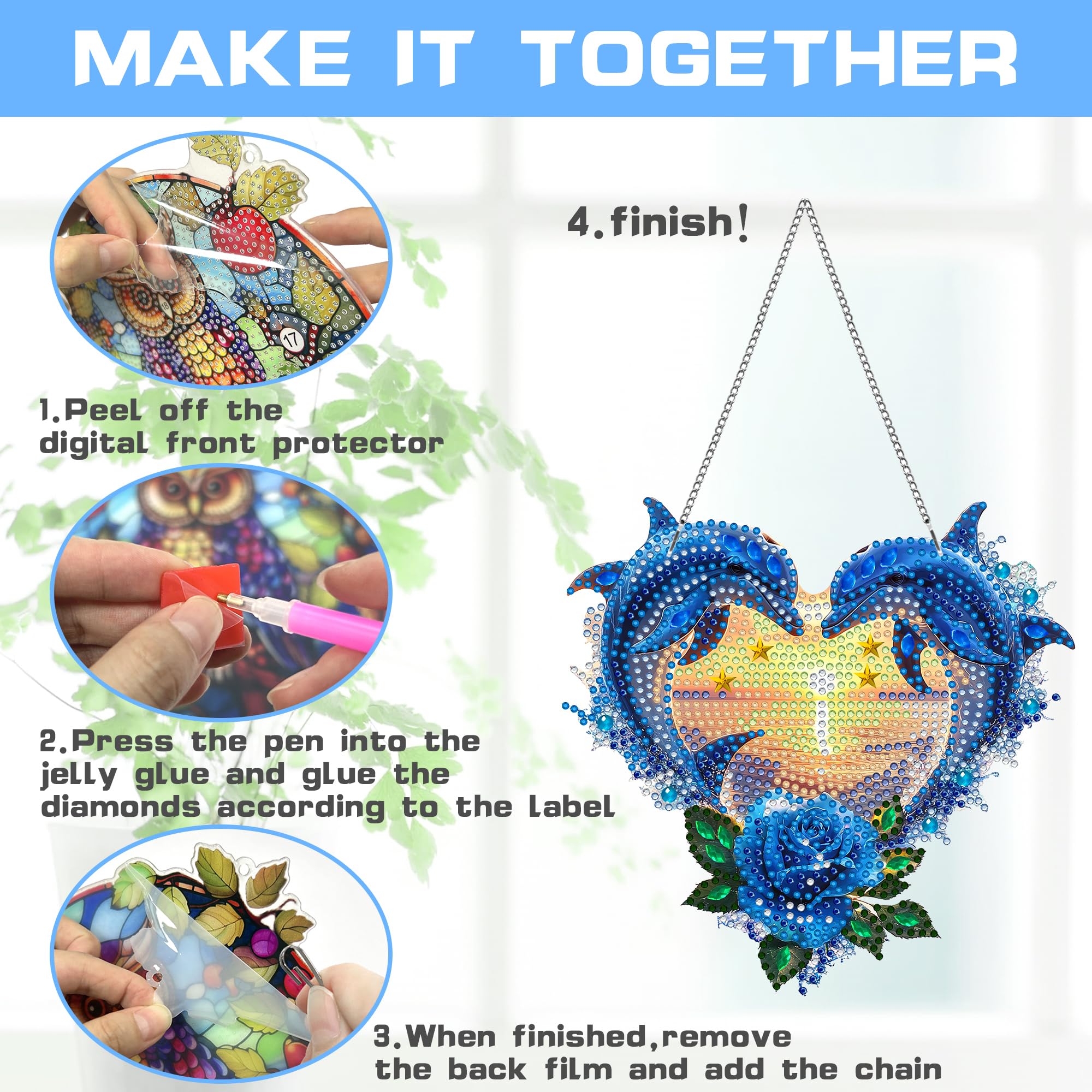 Cadeau idéal C'est un excellent cadeau pour les amateurs d'artisanat. Bimkole 5D Diamond Painting DIY Kits Former, Peinture D'art Broderie Diamond Painting Suspendus Avec Chaîne, Pour Jardin Maison Mur Décoration De Fenêtre Et De Porte 20x20 cm. 3,7 sur 5 étoiles 5. 1 offre à partir de 11,99... Décoration de la maison et cadeaux : le pendentif de peinture à pois diamant 5D fini peut être conservé pendant des années, parfait pour accrocher sur les murs des salons, chambres, studios, bureaux ou restaurants, ajoutant de magnifiques couleurs à l'espace. Matériaux uniques : fabriqué à partir de pierres précieuses en résine de forme spéciale, y compris non seulement des diamants ronds communs, mais aussi des diamants en forme de cristal et de larme, des couleurs vives et une créativité unique. Détendez-vous et soulagez le stress La peinture au diamant ne consiste pas seulement à créer de l'art, c'est aussi une activité thérapeutique qui détend l'esprit, soulage le stress et l'anxiété. Conception d'impression recto verso : le pendentif de peinture d'art en diamant avec un côté conçu comme une image de forage DIY et l'autre côté comme une image imprimée pure, impression de motifs clairs, coexistant dans les aspects plats et tridimensionnels, rend votre expérience plus satisfaisante Activité de bricolage facile et agréable : ce kit de pendentif de peinture diamant DIY est livré avec des modèles adhésifs numérotés et des pierres précieuses en résine colorées pour une activité artisanale amusante et facile. Étapes de la peinture au diamant DIY : 1., Tableau des symboles correspondants, trouvez les diamants que vous souhaitez coller., 2., Déchirez le film partiel et collez le diamant sur la plaque acrylique en fonction du numéro correspondant., 3., La pince à épiler peut facilement couper trois diamants, elle colle si vite., 4., Remplissez le stylo de colle, placez les diamants dans la plaque., 5., Utilisez l'extrémité ronde pour coller un diamant et appuyez légèrement., 13., Une fois terminé, appuyez légèrement sur les diamants avec la main ou un livre pour les maintenir fermement attachés. Il a non seulement plus de texture et de tridimensionnalité, mais donne également à votre œuvre d'art une finition brillante sous la lumière Décoration de la maison et cadeaux : le pendentif de peinture à pois diamant 5D fini peut être conservé pendant des années, parfait pour accrocher sur les murs des salons, chambres, studios, bureaux ou restaurants, ajoutant de magnifiques couleurs à l'espace Peinture Diamant Enfant DCIDBEI 5D DIY Diamant Peinture Couronne Paon 15x15cm Diamant Painting Pendentif Paon Diamond Painting Ornements Suspendus Signes Paon Mur Hanging Décor Pour Fenêtre Mur Et Entrée Idées De Cadeaux Diamond Painting Animaux Le pendentif de peinture diamant DIY peut vous donner un sentiment d'accomplissement, vous apprendre à réduire le stress, à vous adapter aux émotions et à cultiver la patience