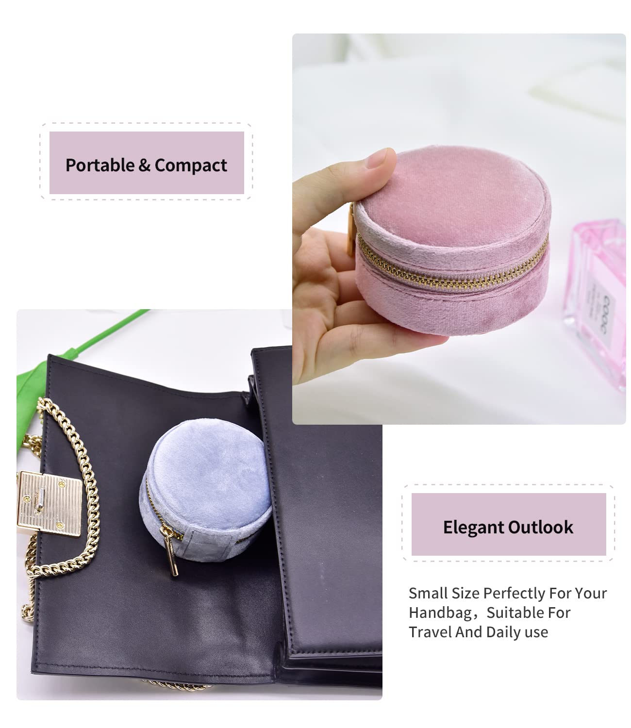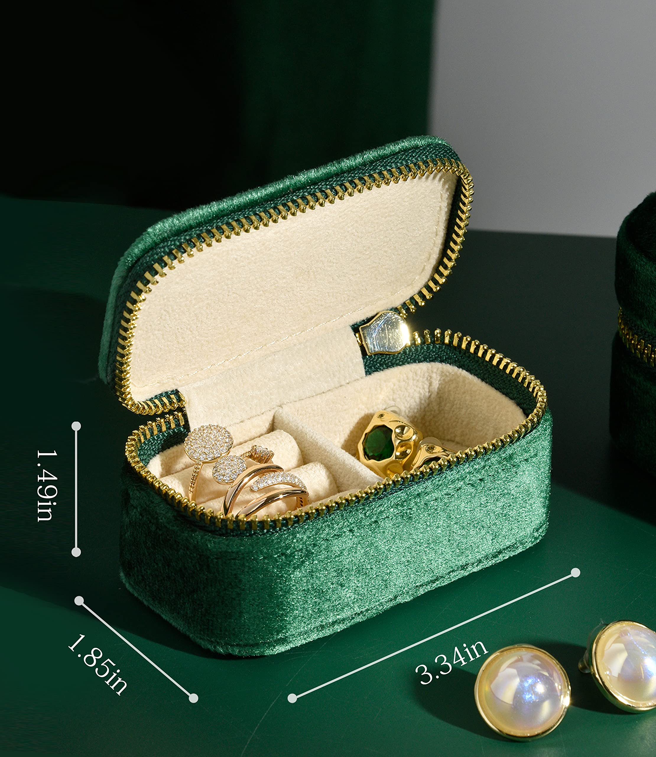 Cadeau parfait : cette boîte à bijoux en velours est le cadeau parfait pour la Saint-Valentin, un anniversaire, la fête des mères, Noël ou un mariage. L'intérieur est fabriqué en velours vermillon doux avec fermeture éclair pour protéger vos bijoux contre les rayures et les dommages. Boîte à Bijoux de Voyage - Protégez vos Bijoux en Déplacement • Bijou Mini Boîte à Bijoux De Voyage, Petite Boîte à Bijoux De Voyage En Velours, Boîte De Rangement Portable Pour Bagues, Boucles D'oreilles, Colliers (vert Haute qualité : l'extérieur est fabriqué en velours durable, sans odeur, résistant à l'humidité, résistant aux cheveux, résistant à la couleur et lisse au toucher. Couleur. Rond - Gris · Marque. TAIMY · Matériau. Métal · Style. Vintage · Fonctionnalité spéciale. Léger, portable, miroir, organisateur de bijoux robuste et... Design simple et compact, apparence élégante, convient pour toutes les femmes et les filles. Boîte à bijoux de voyage portable : mesurant 8 x 8 x 4 cm lorsqu'elle est fermée et ne pèse que 0 kg, cette boîte à bijoux de voyage est portable et assez légère pour tenir facilement dans votre sac à main ou votre valise. Le cadeau parfait pour votre mère, petite amie, épouse, fille, amie. C'est un petit format très fonctionnel pour vos activités quotidiennes.