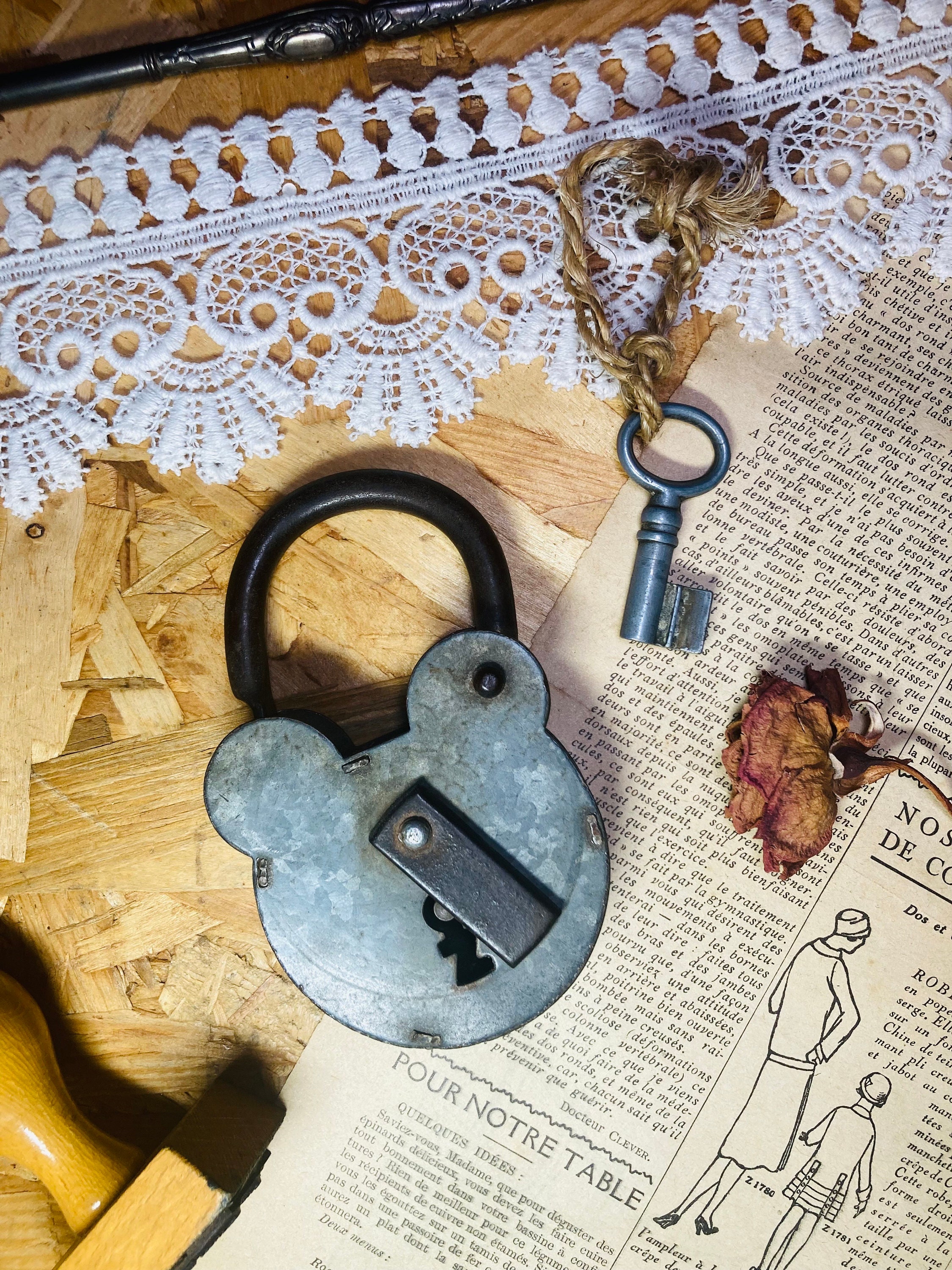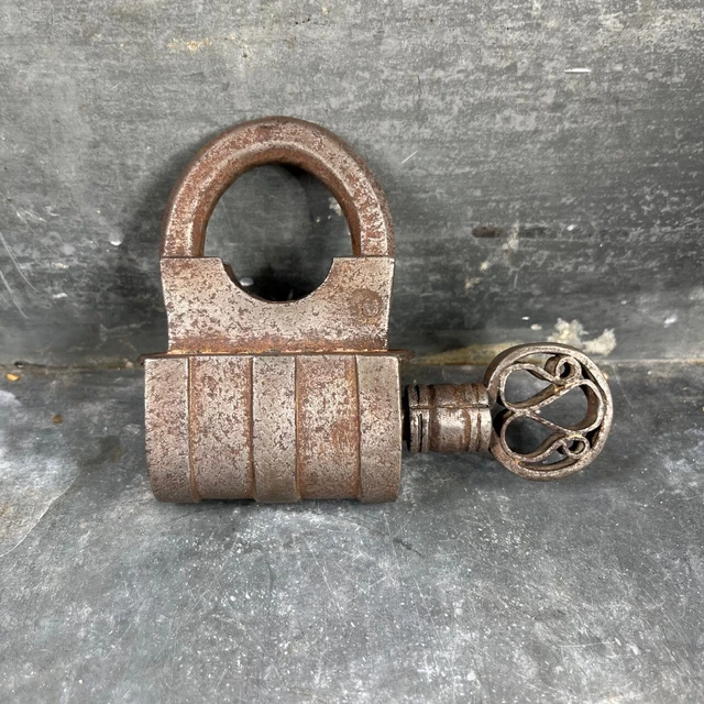 Ancien Petit Cadenas En Fer Et Laiton Avec Sa Clé - à Identifier - Padlock