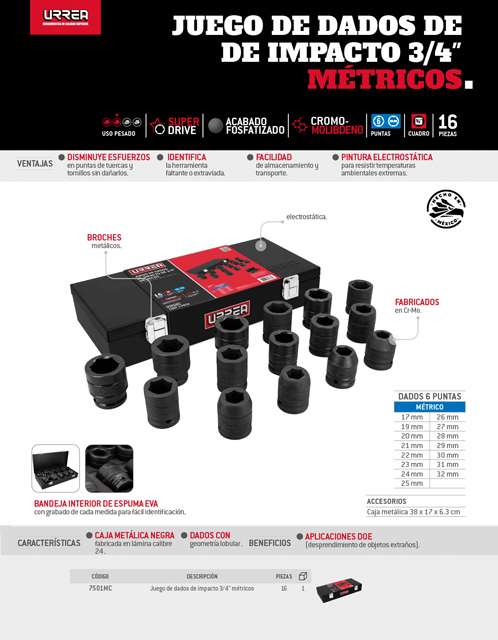 Juego de dados largos de impacto cuadro de 3/4, 6 puntas, métricos, 11 Peuvent être utilisés dans les espaces restreints Jeu de douilles longues ½ SHOCKWAVE™ Impact Duty (13 pièces) | 493... Douille Longue 1/2 750011ML Urrea Juego De Dados Largos De Impacto Cuadro De 3/4", 6 Douille 1/2 Productos Recomendados #61-000-436 Mango Articulado de 15 x 1/2 #81307 GEARWRENCH En stock $ 833.08 Agregar a carrito Pratique pour le travail sur les écrous ou boulons non trouvés dans les cavités avec une longue queue