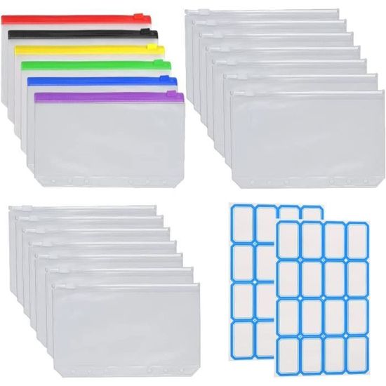 Rangez facilement les pièces de monnaie, les timbres, les billets ou les cartes de fidélité. Matériau durable de qualité supérieure : fabriquées à partir de PVC de haute qualité, ces pochettes A6 sont imperméables, résistantes aux déchirures et durables. Utilisez-les dans un planificateur ou indépendamment comme classeurs d'enveloppes pour espèces. Oderra 15Pcs Pochettes Classeur A6, 6 Trous Pochette Plastique budget enveloppe pour documents cartes photos Transparent Budget Binder A6 Obtenez 20 pochettes pour classeur A6 - suffisamment pour classer les dépenses, la papeterie, les pièces d'identité et bien plus encore. Fermeture éclair sécurisée et transparente : la pochette zippée transparente vous permet d'identifier rapidement le contenu tout en gardant les articles bien fermés. Caractéristiques : 1.La classeur enveloppe budget est en PVC souple de qualité, imperméable, anti-salissures et résistante. Les documents restent visibles, durables et sans jaunissement. 2.La classeur budget enveloppe a une fermeture éclair anti-chute et 6 trous pour classeur, assurant un rangement sécurisé. 3.La budget planner enveloppe est transparente et facile à inspecter. La... Compatibilité du classeur à anneaux A6 : chaque pochette A6 dispose de 6 trous pré-perforés, s'adapte aux classeurs standard à 6 anneaux pour une organisation personnalisable. Plus de reçus perdus ou de pièces de monnaie, idéal pour les portefeuilles économiques et les essentiels de voyage. Taille compacte et pratique (17,7 x 10,8 cm) : convient aux cahiers, planificateurs et albums de scrapbooking A6., Fine et légère, ces pochettes zippées sont faciles à transporter dans des sacs ou des porte-documents. Parfait pour les systèmes de classeurs budgétaires, le remplissage d'argent ou les documents de bureau, gardant tout sécurisé et facile d'accès. Qu’il s’agisse de tickets, de reçus, de cartes de fidélité ou même de petits accessoires électroniques comme des câbles ou écouteurs, elle permet de tout conserver à portée de main sans risquer de perdre ou d’abîmer vos effets personnels Pochette à Zip A5 HAUTOCO Lot De 15 Pochettes à Fermeture éclair A6 En Plastique à 6 Pochette A6 Doux mais robustes, ils protègent les documents contre les déversements, la poussière et l'usure quotidienne.