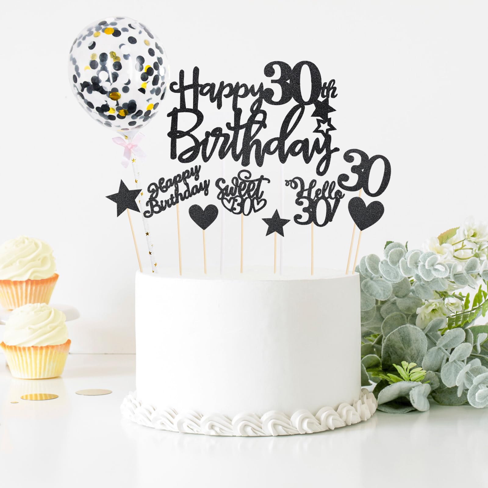 🍰【Parfait pour Divers Desserts】 - Idéal pour décorer les gâteaux d'anniversaire, cupcakes, desserts, biscuits, beignets, fromages, etc. Ce set Feelairy inclut un topper 'Happy Birthday' en acrylique scintillant, 2 ballons à confettis, et des décorations en papier feux d'artifice. Matériau de... 🎈【Utilisations Multiples】 - Parfait pour les anniversaires, les baby showers, les mariages, les banquets de fiançailles, les fêtes de jardin et autres occasions spéciales, ajoutant une touche mémorable à chaque événement important. 🎉【Décoration de Gâteau d'Anniversaire 30 Ans】 - Comprend une décoration en papier pailleté doré et noir Joyeux Anniversaire 30 Ans et sept petites décorations assorties, ajoutant une ambiance festive à votre gâteau d'anniversaire. Deco Gateau Anniversaire Décoration 30 Ans Homme Anniversaire Ballon Argent Bleu Décoration Decoration Anniversaire 18 Ans Lesser Bairam Cake Topper Acrylique Décor Gâteau Insérer Carte pour Description du produit Kit de Décoration pour Gâteau d'Anniversaire de 30 AnsFaites briller votre 30e anniversaire et créez des souvenirs inoubliables avec ces magnifiques décorations ! ▶ Couleur : Or et Noir▶ Matière : carton▶ Quantité : 8 pièces Avertissement De Sûreté Aucun avertissement applicable