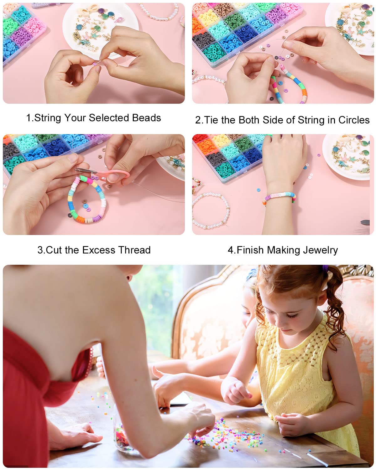 Jissta Perles Enfant,10660 pcs Perle pour Bracelet,4800 Perles de Couleur de 3 mm, 4800 Perles d'argile de 6 mm, et Divers Kits pour La Fabrication de Bracelets, Adaptés à La Fabrication de Bijoux pour Enfants. Les coffrets de perles et bijoux sont conçus pour être inclusifs et adaptatifs, offrant des bénéfices thérapeutiques et éducatifs pour les enfants ayant des besoins spéciaux Remarque : la couleur et le style de tous les accessoires dépendent du produit réel reçu. Loisirs Créatifs Adultes Perles D'argile Pour Bracelets, Kit De Fabrication De Bracelet à Perles A Repasser Interaction parents-enfants : le bricolage de bijoux convient aux activités parents-enfants et contribue à améliorer la confiance entre parents et enfants, ainsi qu'à développer la pensée créative des enfants, leurs compétences manuelles, leur coordination œil-main et à entraîner leur concentration. Perle Et Assortiment - Limics24 - Ensemble 4800Pcs Perles Espacees 24... Enfant Perle Fabrication Bijoux Enfant kit,Bracelet Bricolage Perles Création DIY : Une grande variété de styles pour répondre à différents besoins créatifs, ce set de perles artisanales pour bracelet est adapté à toutes sortes de bijoux DIY, tels que les bracelets, les bracelets d'amitié, les colliers, les chaînes de taille, les bracelets de cheville, les porte-clés, les chaînes de lunettes, les anneaux ou le tissage de perles, la broderie, la couture et d'autres métiers. Cadeau parfait : Le riche ensemble de styles est parfait pour les enfants, combinez avec vos breloques préférées pour former un bracelet pour vous-même ou votre famille ou vos amis, comme cadeau d'anniversaire, de remise de diplôme, de Noël, de Thanksgiving ou du Nouvel An.