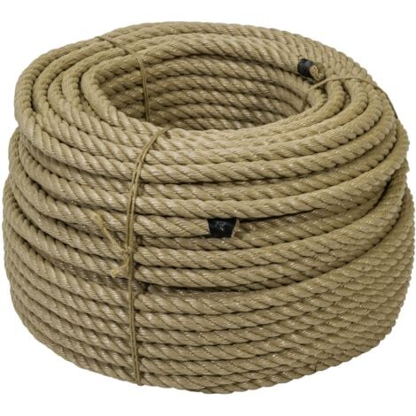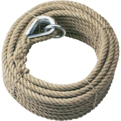 Cordage en chanvre synthétique, corde (câble) chez Kanirope – fabriqué à partir de fils de fibres discontinues dit texturées de polypropylène. Parfaitement adapté pour un usage en extérieur tout comme en intérieur, imperméable (aucune absorbtion d’eau) Fournisseur Grossiste en Corde et cordage - La cordeline Vous déterminez la taille de la boucle en fonction de vos besoins en sélectionnant la taille appropriée petite, moyenne ou grande. Les tailles diffèrent par le diamètre intérieur de la boucle Matière: 100% polypropylène imitation chanvre (PP, PPS), catégorie A, qualité poli Corde Chanvre Synthétique Corde Chanvre - Qualité Haut-de-gamme - Corderie Mansas Cordage En Chanvre Synthétique Utilisations: idéal pour toutes sortes de bricolage, d'activités de loisir (trapèze, anneaux, balançoire, filet d'escalade pour enfants, panier de basket, corde…); usage sportif (gymnastique, corde à grimper, corde d'entraînement), escalade, tir à la corde, lutte à la corde; équitation (longe); rampe d'escalier, de séparation; corde de levage ou tirage; navigation, gréement; industrie, construction, matériau d'étanchéité; aménagement paysager, horticulture; modélisme; décoration d'intérieur - design pour hôtels, bars, restaurants, appartements; décoration de vitrine; étiquetage… - Parfaitement adapté pour un usage en extérieur tout comme en intérieur - Imperméable, flottant, léger - Ne gonfle pas, ne se contracte pas (absorption d'eau: 0%) - Perte de résistance due à l'humidité: 0% (très bonne) - Résistance aux UV: bonne - Température de lavage: 30° (seulement lavable à la main et non en machine) - Température de ramollissement: 140°C - Température de fusion: 170°C - Essence, diesel et graisses: sans effet - Couleur chanvre (beige), pas de possibilité de coloration ultérieure Résistance rupture: 2000 daN (kg), poids: 10,00 kg/100m, produit haute qualité Diamètre du cordage: 16mm, longueur: 20m, couleur: chanvre (beige), 4 torons toronné, épissable Corde de chanvre de sécurité Corde de chanvre en Fiber de chanvre...