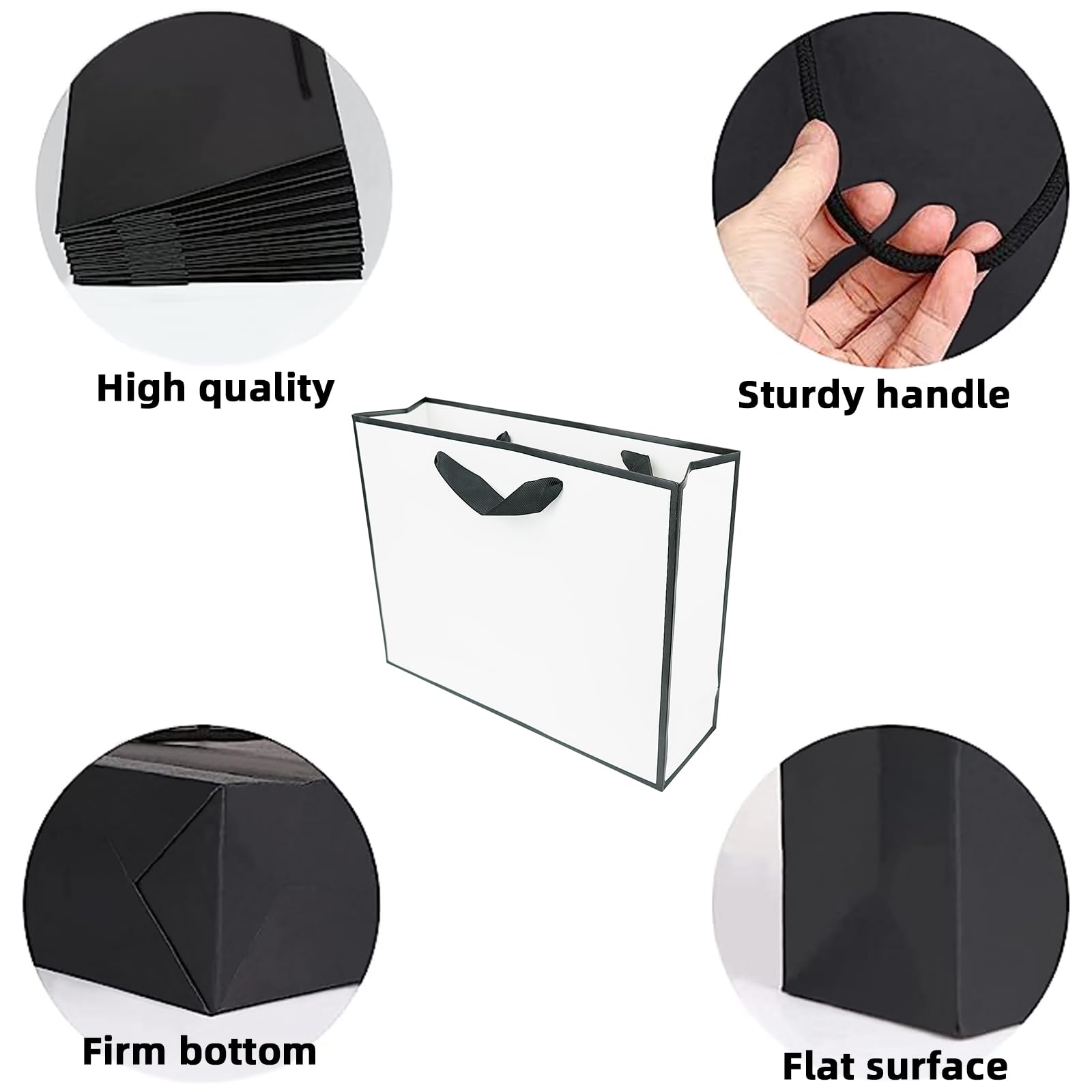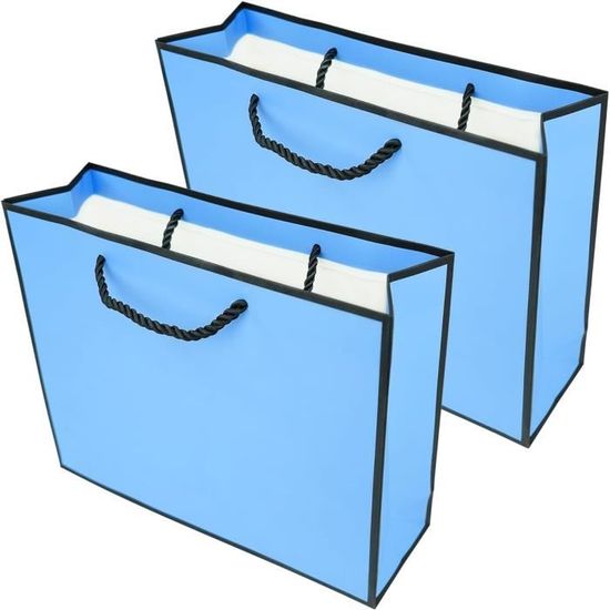 LE PAQUET COMPREND : Ce set contient 2 sacs cadeaux en papier de 20x10x28 cm (L x H x L). Les sacs cadeaux de luxe laminés mat avec poignée sont fabriqués en papier kraft renouvelable de première qualité, qui est plus respectueux de l'environnement, non toxique, ne se casse pas facilement, est durable et réutilisable à long terme. HAUTE QUALITÉ - Fabriqués en papier kraft couché de haute qualité (230 g/m²) et dotés d'une solide poignée en tissu. PACK4YA Sacs Cadeaux en Papier avec Ruban Nœud, Sacs LE PAQUET COMPREND : Ce set contient 2 sacs cadeaux en papier de 20x10x28 cm (L x H x L). Les sacs cadeaux de luxe laminés mat avec poignée sont fabriqués... Sac Cadeau Noir 12 X Sacs En Papier, Sacs Cadeaux Avec Bord Noir Laminé Sac Kraft Avec Poignée OCCASIONS : Ces sacs cadeaux magnifiques et robustes offrent une touche de luxe supplémentaire à vos cadeaux et événements sociaux, comme les sacs de vente au détail sont parfaits pour les cadeaux, le shopping, l'ensachage d'articles pour la conférence, peuvent être utilisés pour les anniversaires, les décorations de fête, les mariages, etc.