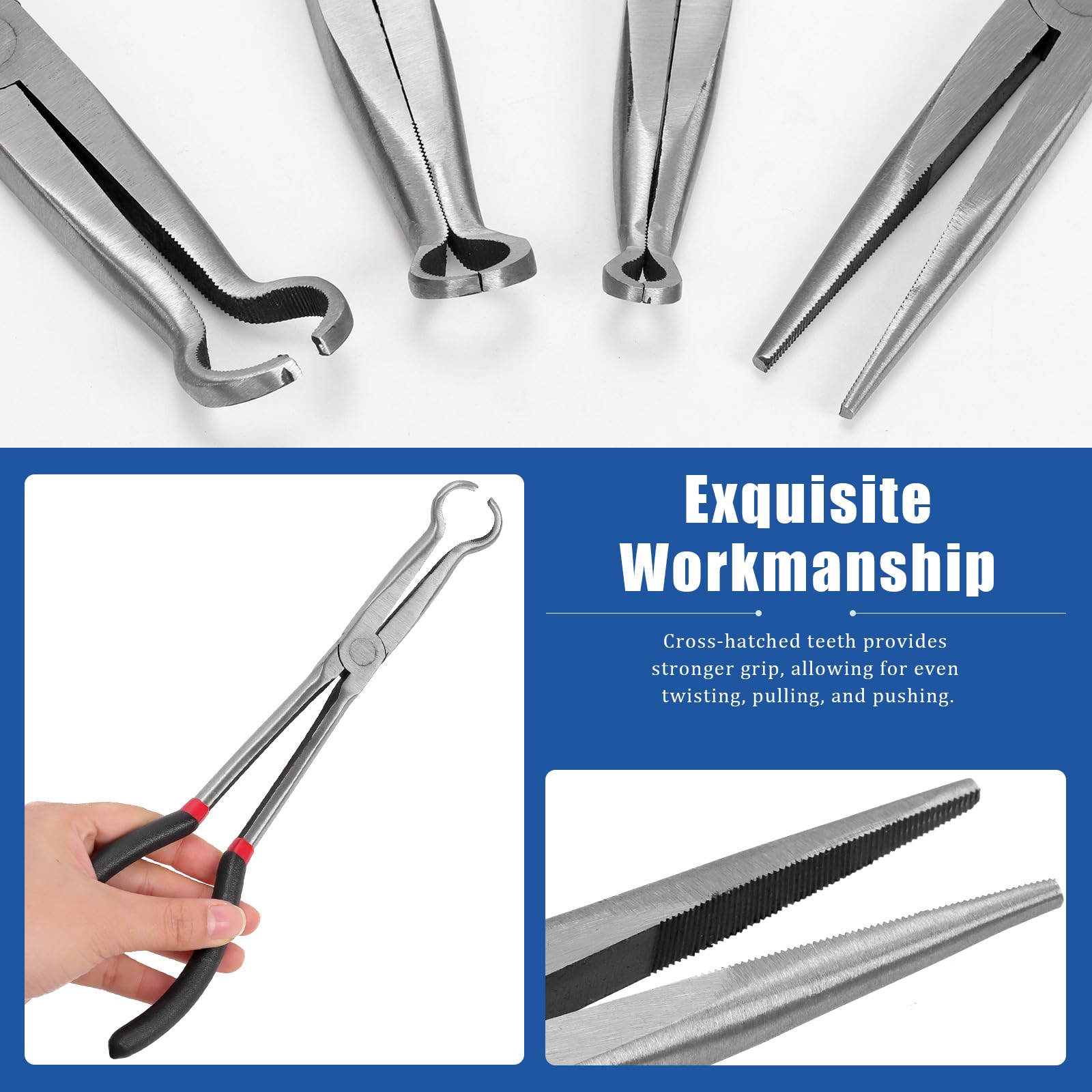 / Ensemble pinces serrage à action rapide en métal pour travail du bois Fabriquées à partir d'acier au carbone pour une meilleure résistance et durabilité, ces pinces sont conçues pour durer et résister aux travaux difficiles., Les mâchoires usinées avec précision garantissent une puissance de préhension maximale, vous permettant de saisir facilement et en toute sécurité même les boulons et écrous les plus tenaces., La pince a une ouverture dentelée... Mayouko Lot De 3 Pinces De Serrage De 27,9 Cm : 5/16", 1/2" Et 3/4" Et 3 Pinces à Longue Portée : Angle De 90 Degrés, Angle De 45 Degrés Et Bec L'ensemble de 12 clés à cliquet à prise de 3/8 po de Milwaukee assure une polyvalence et un accès inégalés. La clé à cliquet à profil mince comporte une...